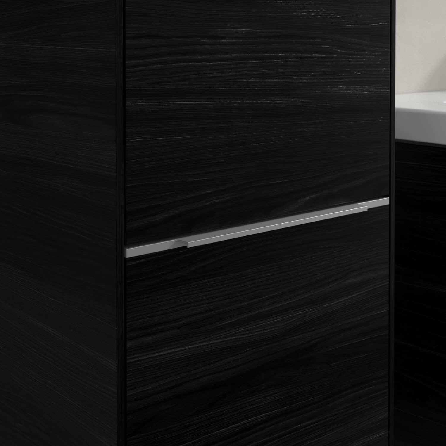 Der geschlossene Hochschrank der Kollektion Subway 3.0 von Villeroy & Boch zeigt sich gradlinig und zeitlos. Er ist die perfekte Ergänzung zum Waschtischunterschrank und bietet großzügigen Stauraum für Handtücher und andere Badutensilien. Front und Korpus sind mit einer hochwertigen Direktbeschichtung oder Lackierung, deren Anti-Fingerprint-Oberfläche unschönen Fingerabdrücken vorbeugt, versehen. Hinter den zwei nach links öffnenden Türen verbergen sich vier hochwertige Einlegeböden aus Glas und ein fester Fachboden. Während die obere Tür sich durch sanftes Tippen öffnen lässt, ist die untere Tür mit einer praktischen, dezenten Griffleiste ausgestattet.