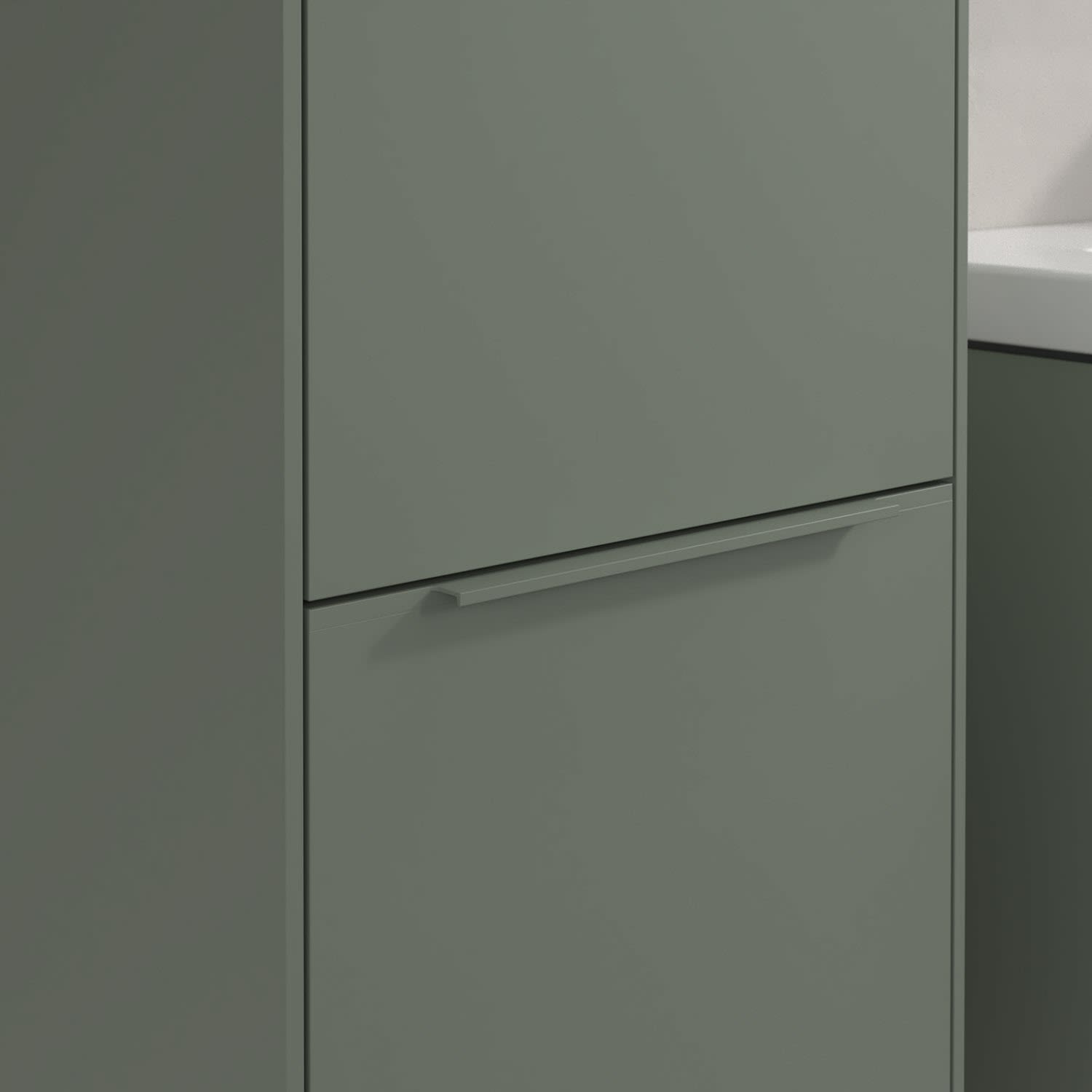 Der geschlossene Hochschrank der Kollektion Subway 3.0 von Villeroy & Boch zeigt sich gradlinig und zeitlos. Er ist die perfekte Ergänzung zum Waschtischunterschrank und bietet großzügigen Stauraum für Handtücher und andere Badutensilien. Front und Korpus sind mit einer hochwertigen Direktbeschichtung oder Lackierung, deren Anti-Fingerprint-Oberfläche unschönen Fingerabdrücken vorbeugt, versehen. Hinter den zwei nach links öffnenden Türen verbergen sich vier hochwertige Einlegeböden aus Glas und ein fester Fachboden. Während die obere Tür sich durch sanftes Tippen öffnen lässt, ist die untere Tür mit einer praktischen, dezenten Griffleiste ausgestattet.