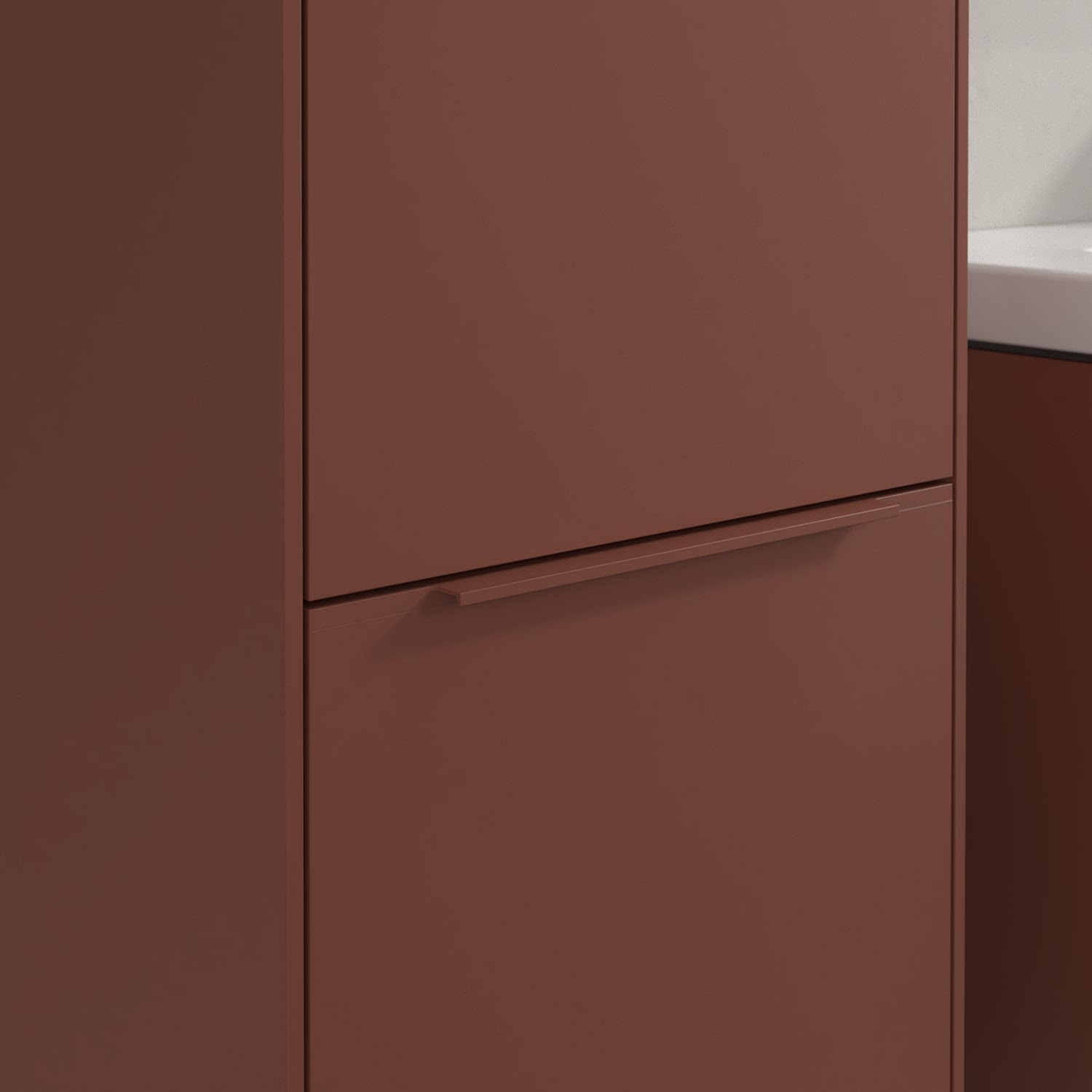 Der geschlossene Hochschrank der Kollektion Subway 3.0 von Villeroy & Boch zeigt sich gradlinig und zeitlos. Er ist die perfekte Ergänzung zum Waschtischunterschrank und bietet großzügigen Stauraum für Handtücher und andere Badutensilien. Front und Korpus sind mit einer hochwertigen Direktbeschichtung oder Lackierung, deren Anti-Fingerprint-Oberfläche unschönen Fingerabdrücken vorbeugt, versehen. Hinter den zwei nach links öffnenden Türen verbergen sich vier hochwertige Einlegeböden aus Glas und ein fester Fachboden. Während die obere Tür sich durch sanftes Tippen öffnen lässt, ist die untere Tür mit einer praktischen, dezenten Griffleiste ausgestattet.