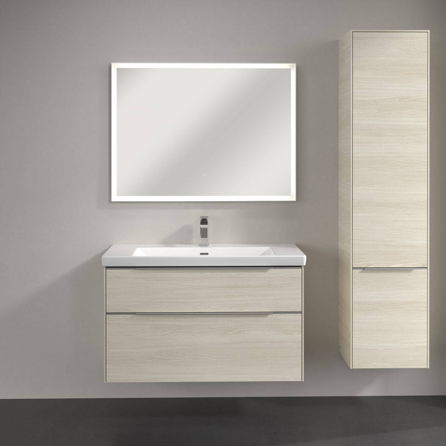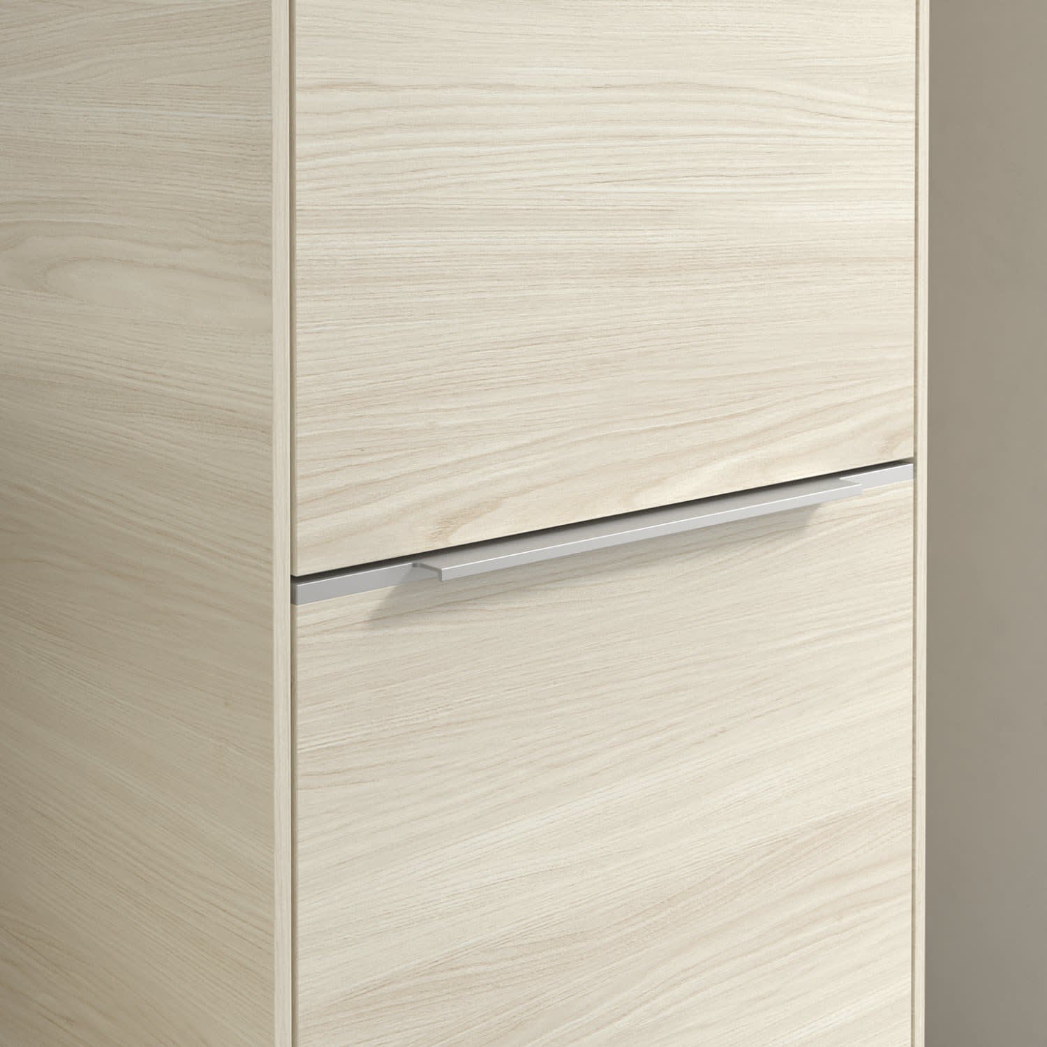 Der geschlossene Hochschrank der Kollektion Subway 3.0 von Villeroy & Boch zeigt sich gradlinig und zeitlos. Er ist die perfekte Ergänzung zum Waschtischunterschrank und bietet großzügigen Stauraum für Handtücher und andere Badutensilien. Front und Korpus sind mit einer hochwertigen Direktbeschichtung oder Lackierung, deren Anti-Fingerprint-Oberfläche unschönen Fingerabdrücken vorbeugt, versehen. Hinter den zwei nach rechts öffnenden Türen verbergen sich vier hochwertige Einlegeböden aus Glas und ein fester Fachboden. Während die obere Tür sich durch sanftes Tippen öffnen lässt, ist die untere Tür mit einer praktischen, dezenten Griffleiste ausgestattet.
