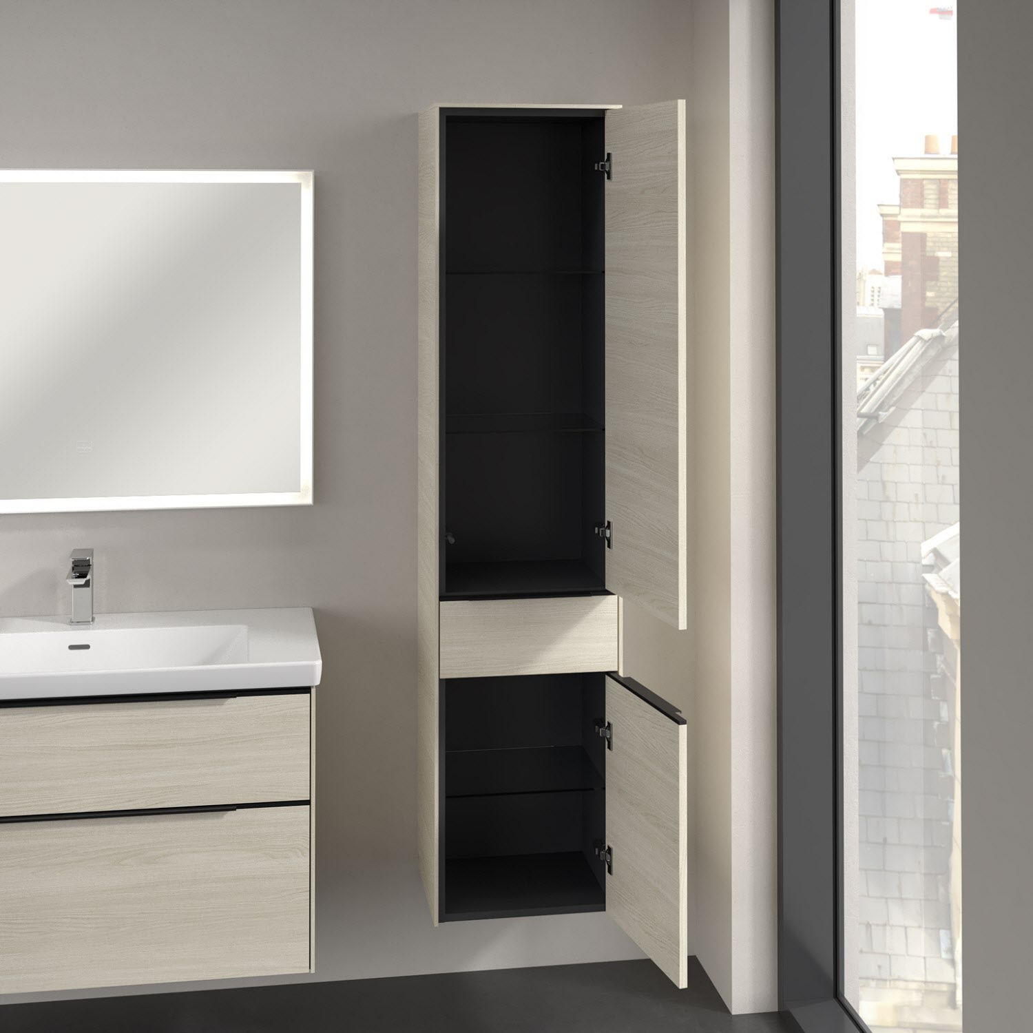 Villeroy & Boch Subway 3.0 Hochschrank 40 x 171 cm mit 1 Auszug und 2 Türen, Anschlag rechts