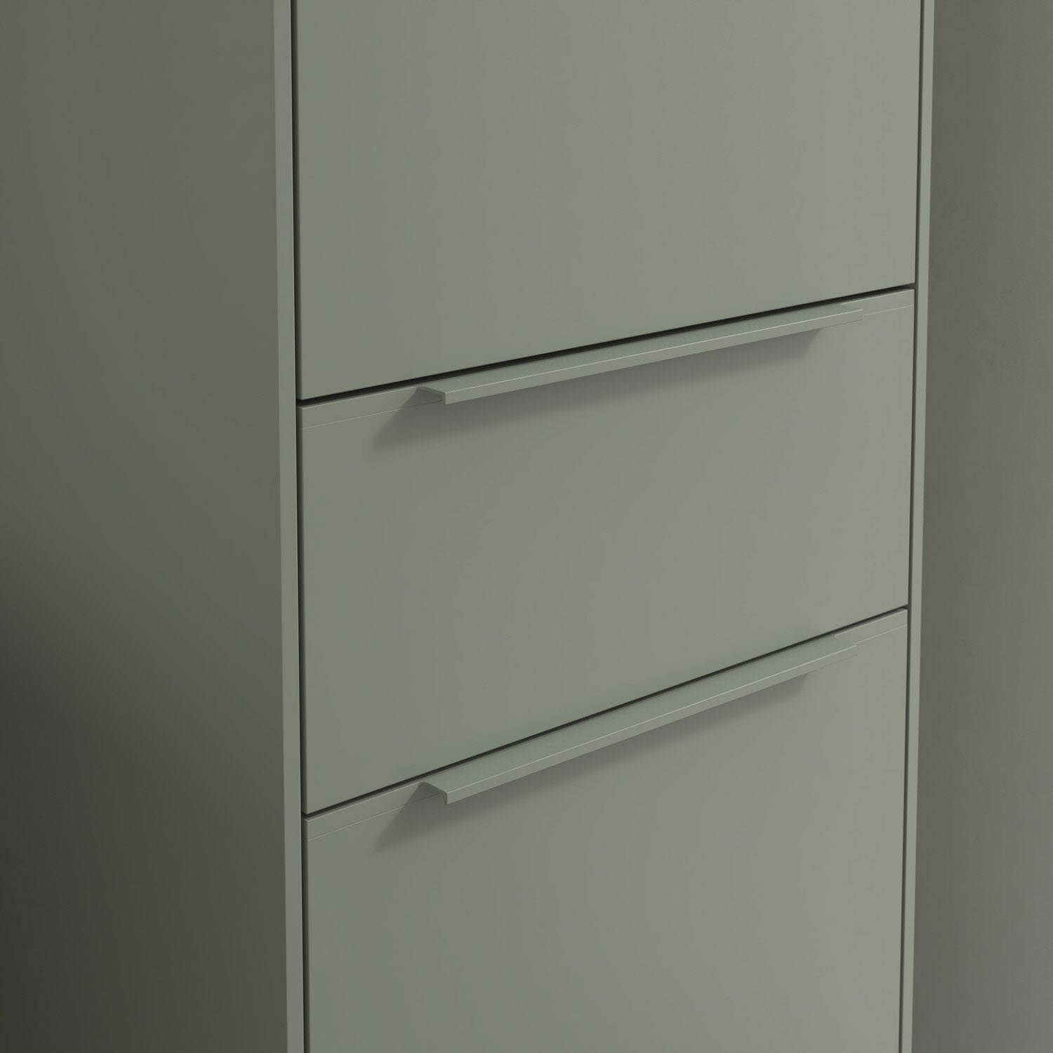 Der geschlossene Hochschrank der Kollektion Subway 3.0 von Villeroy & Boch zeigt sich gradlinig und zeitlos. Er ist die perfekte Ergänzung zum Waschtischunterschrank und bietet großzügigen Stauraum für Handtücher und andere Badutensilien. Front und Korpus sind mit einer hochwertigen Direktbeschichtung oder Lackierung, deren Anti-Fingerprint-Oberfläche unschönen Fingerabdrücken vorbeugt, versehen. Hinter den zwei nach rechts öffnenden Türen verbergen sich drei hochwertige Einlegeböden aus Glas und zwei feste Fachböden. Während die obere Tür sich durch sanftes Tippen öffnen lässt, ist die untere Tür mit einer praktischen, dezenten Griffleiste ausgestattet. In der Mitte befindet sich eine voll ausziehbare Schublade mit rutschhemmendem Boden und Selbsteinzug-Funktion. Dort können auch kleinere Utensilien übersichtlich verstaut werden.