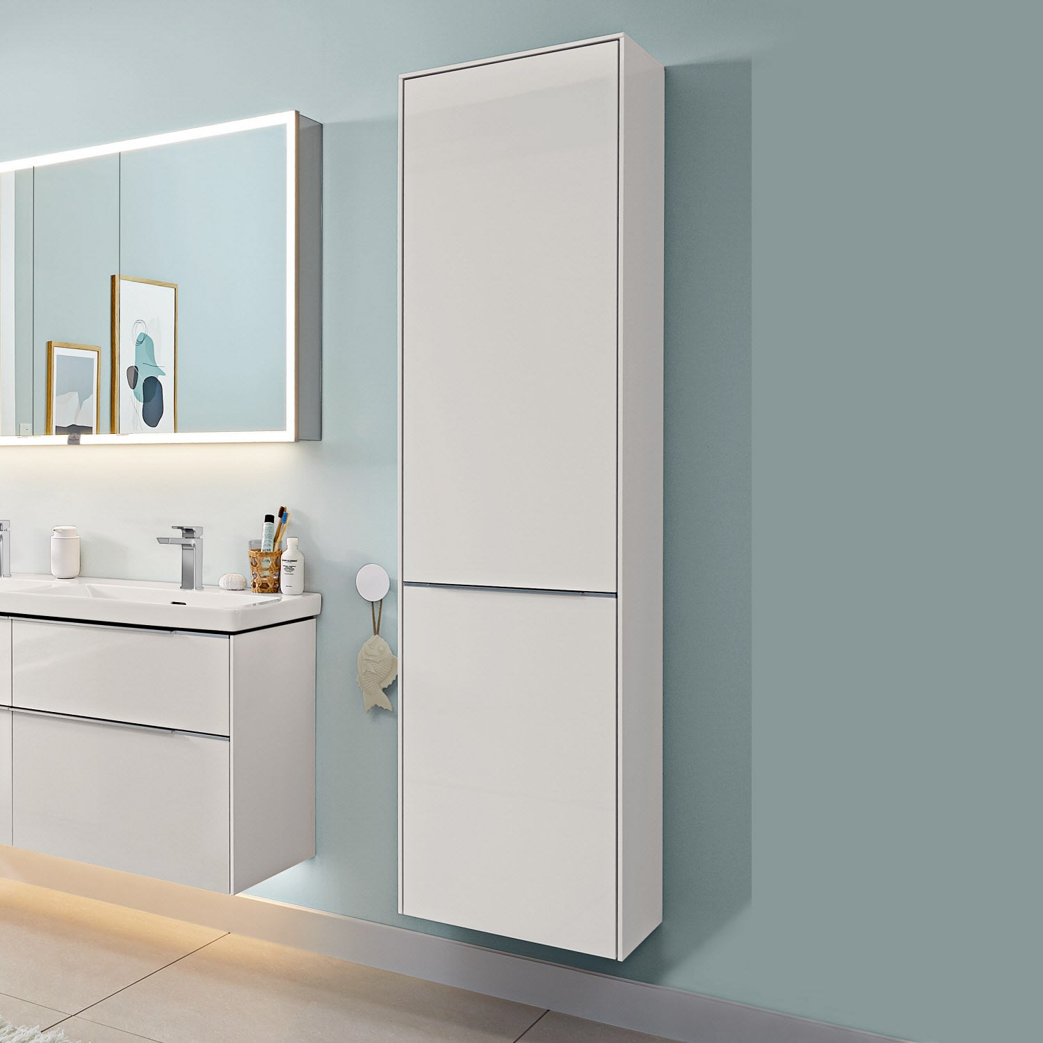 Der geschlossene Hochschrank der Kollektion Subway 3.0 von Villeroy & Boch zeigt sich gradlinig und zeitlos. Er ist die perfekte Ergänzung zum Waschbeckenunterschrank und bietet Stauraum für Handtücher und andere Badutensilien. Front und Korpus sind mit einer hochwertigen Direktbeschichtung oder Lackierung, deren Anti-Fingerprint-Oberfläche unschönen Fingerabdrücken vorbeugt, versehen. Hinter der oberen Tür mit Türanschlag links befinden sich zwei hochwertige Einlegeböden aus Glas und ein fester Fachboden. Während die obere Tür sich durch sanftes Tippen öffnen lässt, ist die untere Tür mit einer praktischen, dezenten Griffleiste ausgestattet. Daher befindet sich ein integrierter Wäschekorb, in dem kurzerhand die schmutzige Wäsche verschwindet.
