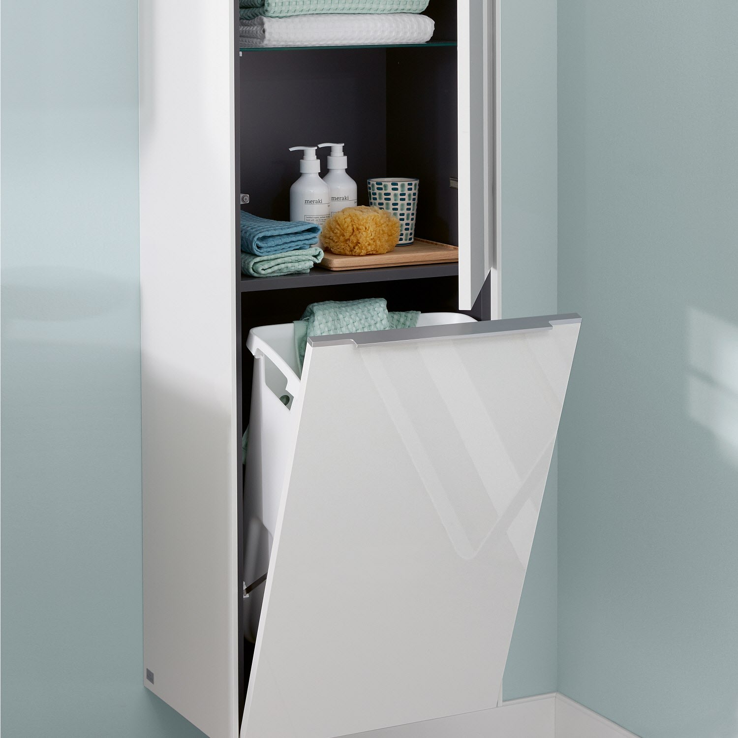 - 1 Tür als Wäscheklappe mit integriertem Wäschekorb
