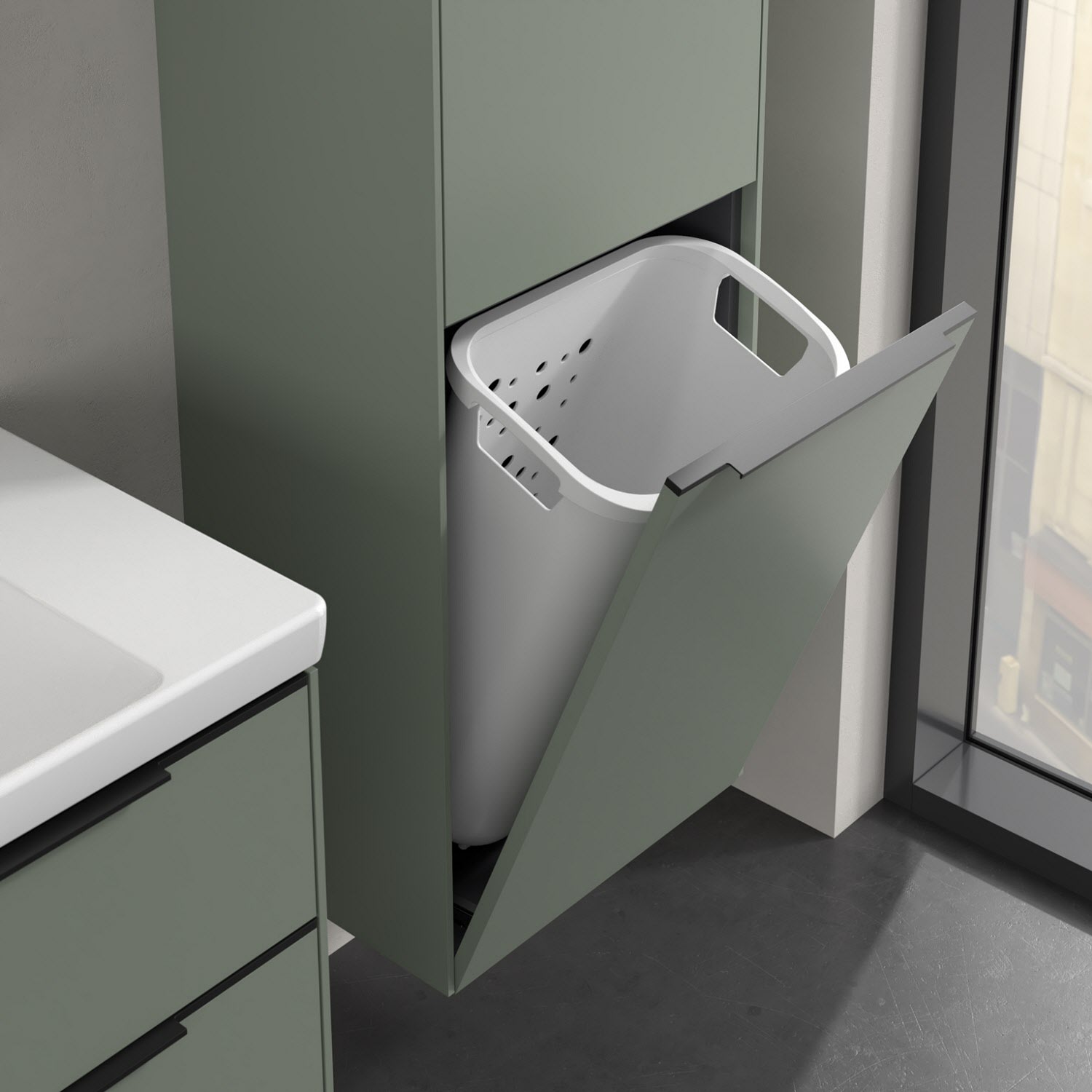 - 1 Tür als Wäscheklappe mit integriertem Wäschekorb