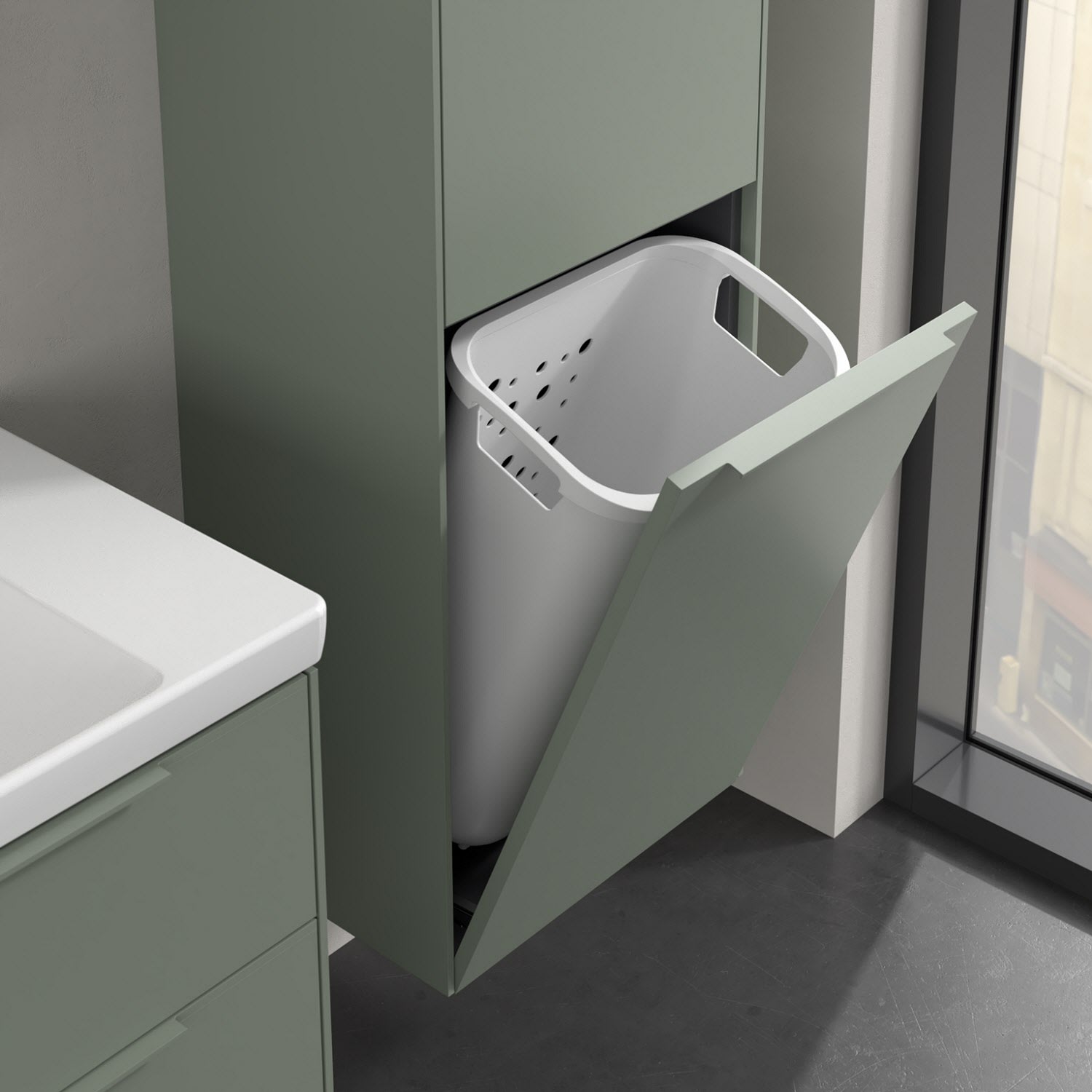 - 1 Tür als Wäscheklappe mit integriertem Wäschekorb