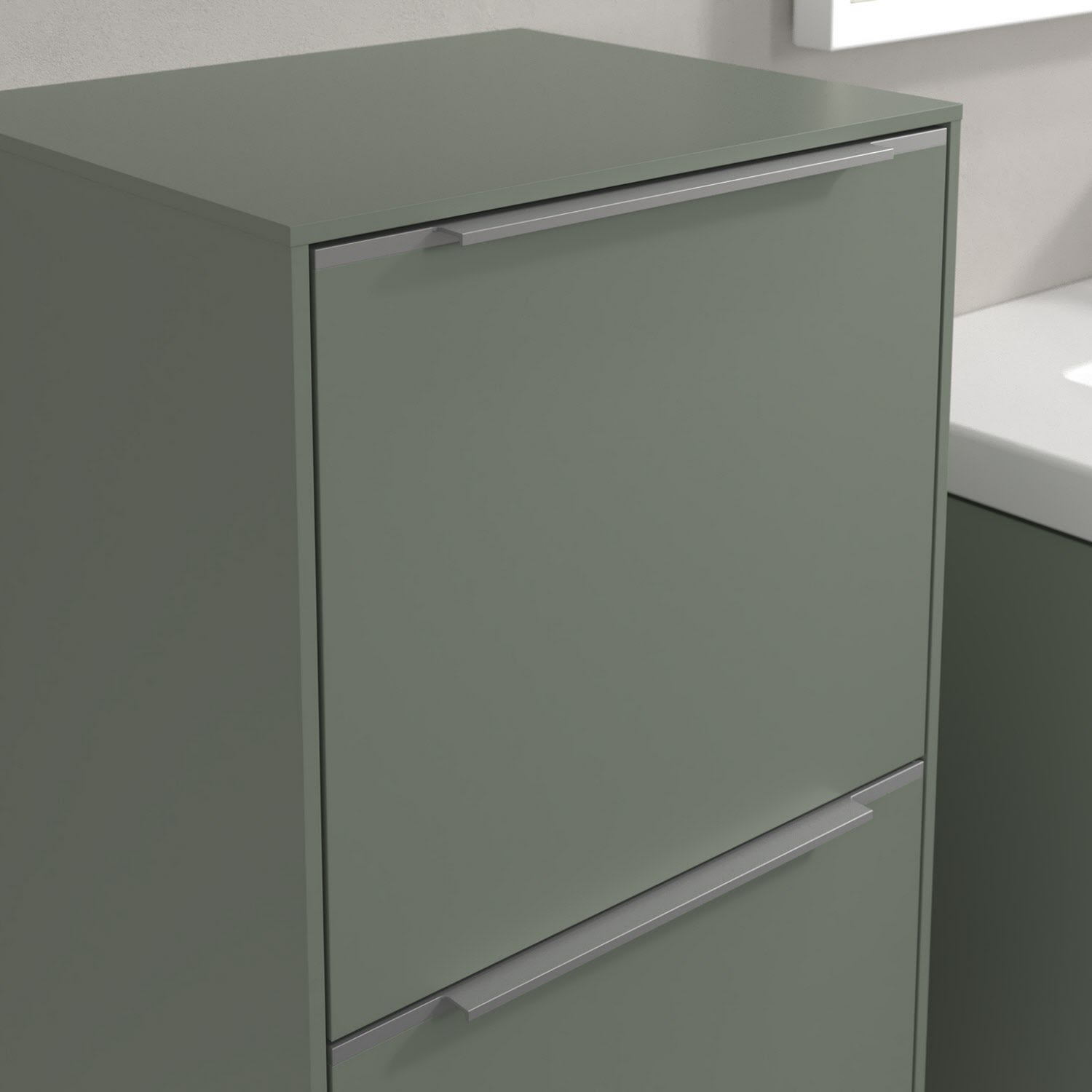 Der Seitenschrank der Kollektion Subway 3.0 von Villeroy & Boch zeigt sich gradlinig und zeitlos. Er ist die perfekte Ergänzung zum Waschbeckenunterschrank und bietet Stauraum für Handtücher und andere Badutensilien. Front und Korpus sind mit einer hochwertigen Direktbeschichtung oder Lackierung, deren Anti-Fingerprint-Oberfläche unschönen Fingerabdrücken vorbeugt, versehen. Hinter der nach links öffnenden Tür mit praktischer, dezenter Griffleiste verbirgt sich ein stabiler Einlegeboden aus Glas. Die voll ausziehbare Schublade mit rutschhemmendem Boden und Selbsteinzug-Funktion sorgt dafür, dass auch kleinere Utensilien übersichtlich verstaut werden können.