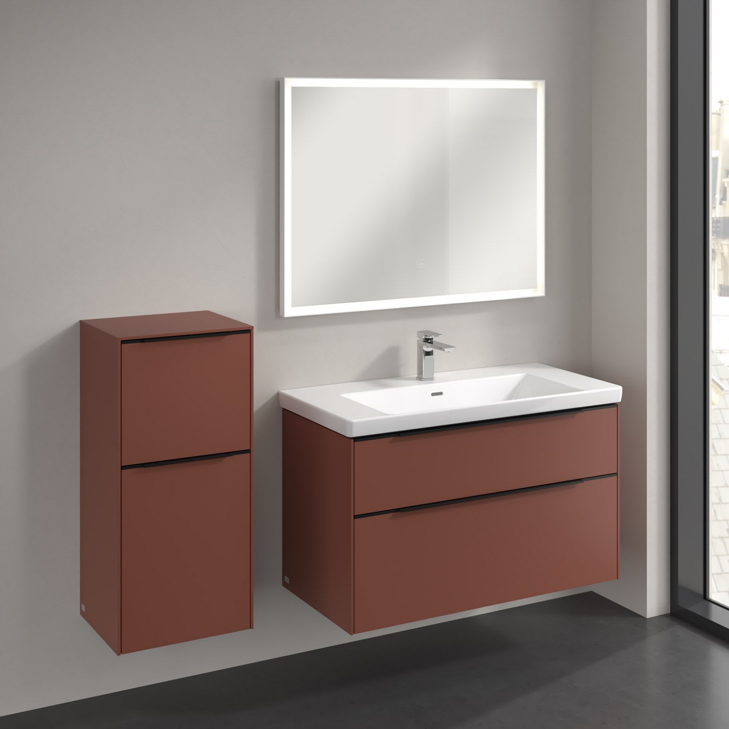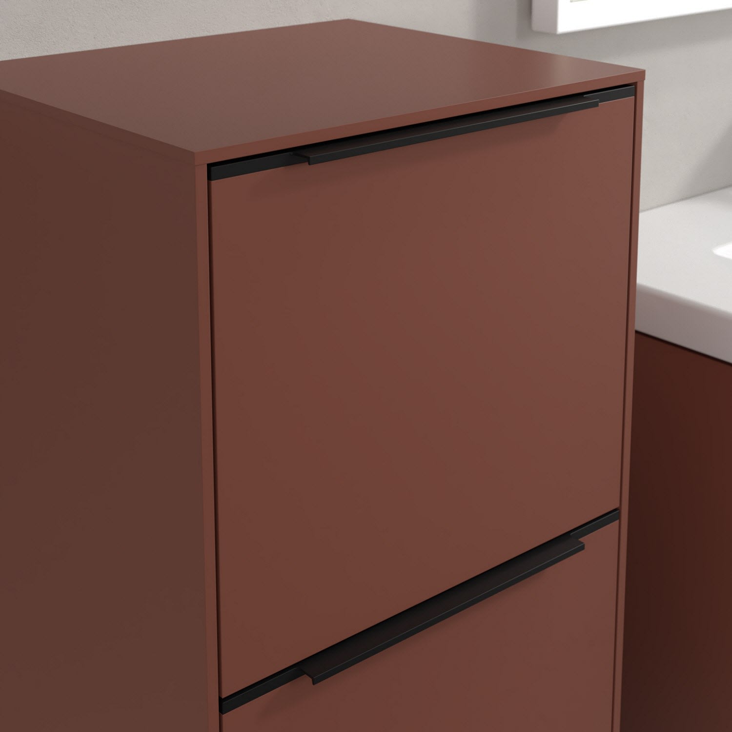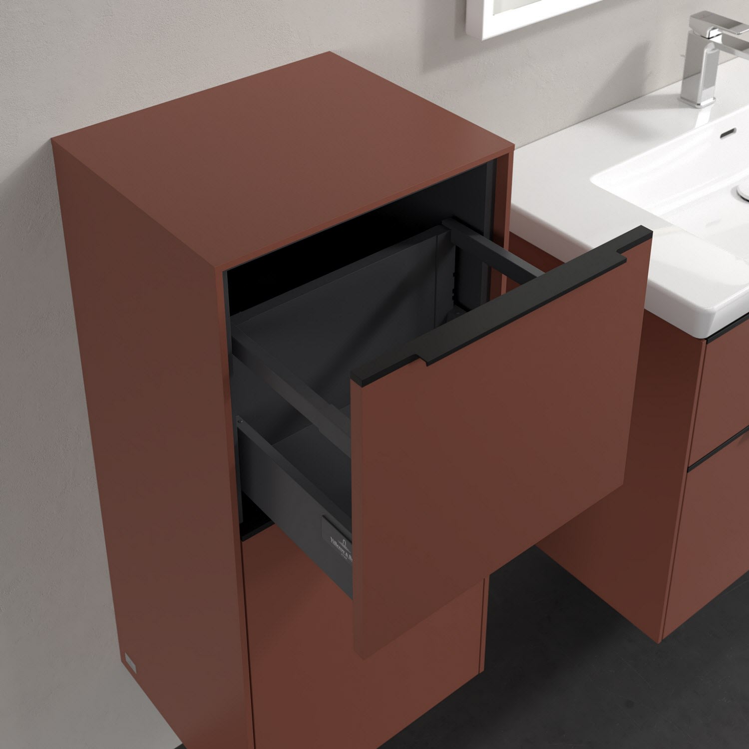 Der Seitenschrank der Kollektion Subway 3.0 von Villeroy & Boch zeigt sich gradlinig und zeitlos. Er ist die perfekte Ergänzung zum Waschbeckenunterschrank und bietet Stauraum für Handtücher und andere Badutensilien. Front und Korpus sind mit einer hochwertigen Direktbeschichtung oder Lackierung, deren Anti-Fingerprint-Oberfläche unschönen Fingerabdrücken vorbeugt, versehen. Hinter der nach links öffnenden Tür mit praktischer, dezenter Griffleiste verbirgt sich ein stabiler Einlegeboden aus Glas. Die voll ausziehbare Schublade mit rutschhemmendem Boden und Selbsteinzug-Funktion sorgt dafür, dass auch kleinere Utensilien übersichtlich verstaut werden können.