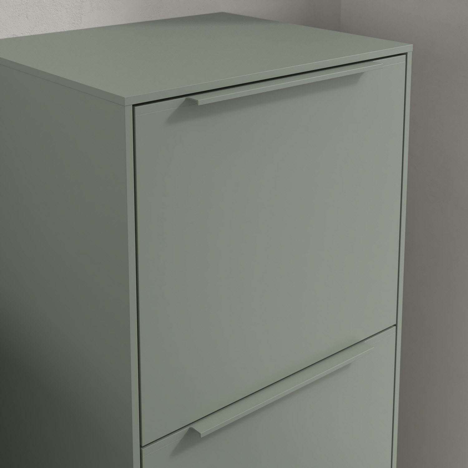 Der Seitenschrank der Kollektion Subway 3.0 von Villeroy & Boch zeigt sich gradlinig und zeitlos. Er ist die perfekte Ergänzung zum Waschbeckenunterschrank und bietet Stauraum für Handtücher und andere Badutensilien. Front und Korpus sind mit einer hochwertigen Direktbeschichtung oder Lackierung, deren Anti-Fingerprint-Oberfläche unschönen Fingerabdrücken vorbeugt, versehen. Hinter der nach rechts öffnenden Tür mit praktischer, dezenter Griffleiste verbirgt sich ein stabiler Einlegeboden aus Glas. Die voll ausziehbare Schublade mit rutschhemmendem Boden und Selbsteinzug-Funktion sorgt dafür, dass auch kleinere Utensilien übersichtlich verstaut werden können.