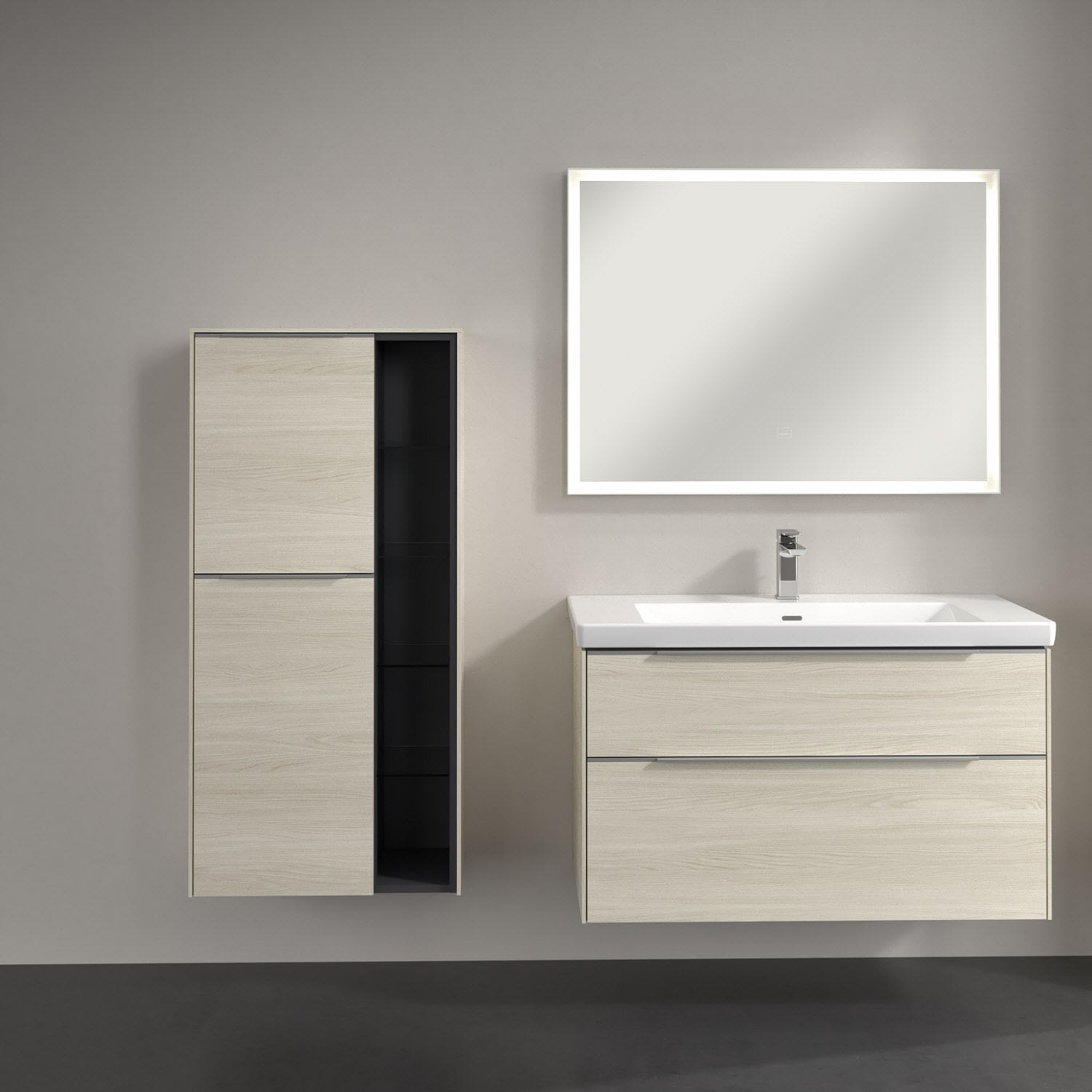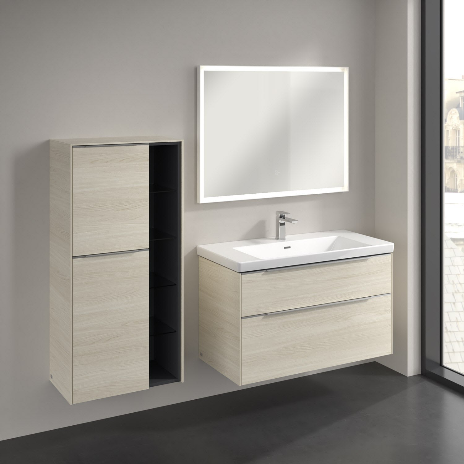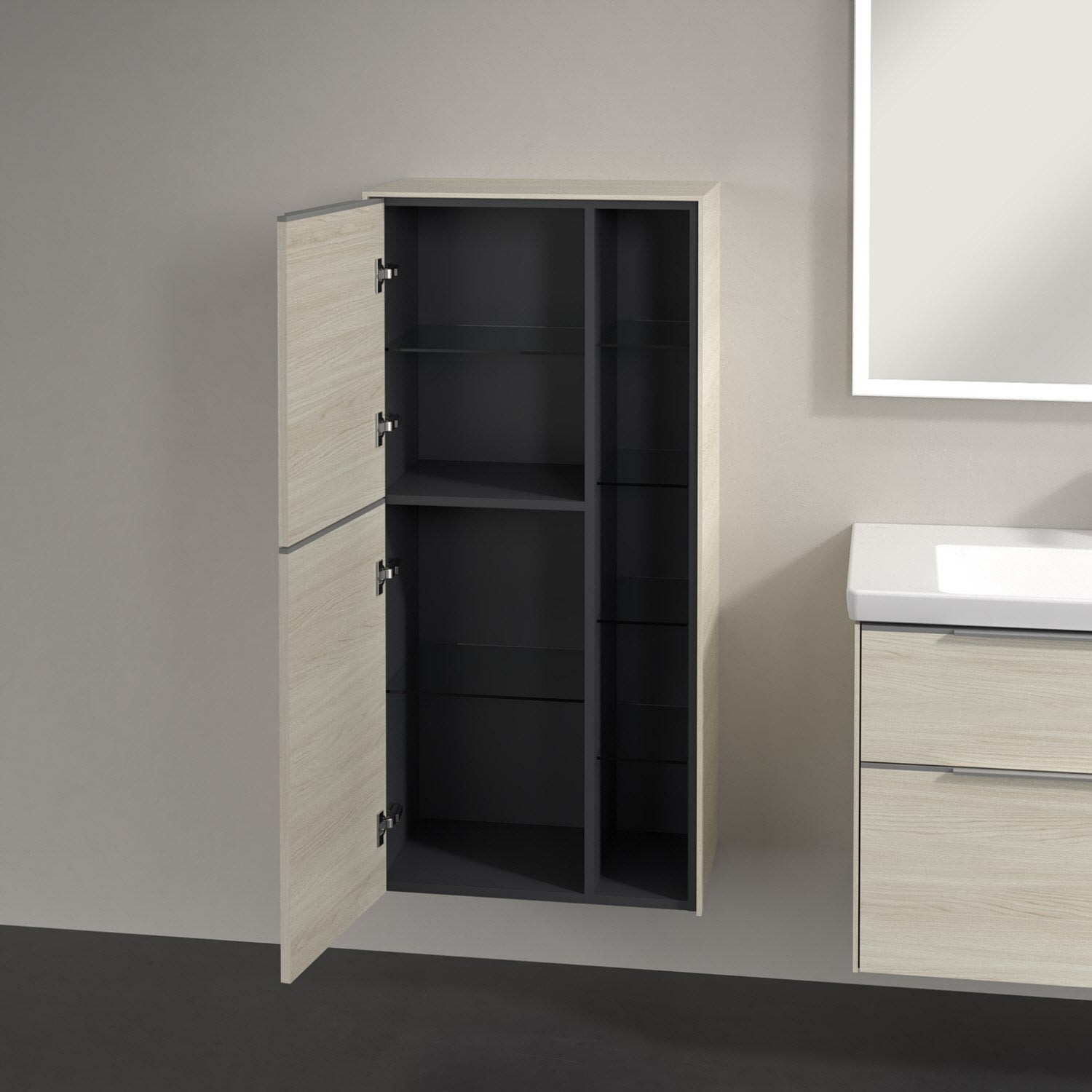 Villeroy & Boch Subway 3.0 Mittelschrank 57,4 x 120 cm mit 1 offenen Fach und 2 Türen, Anschlag links