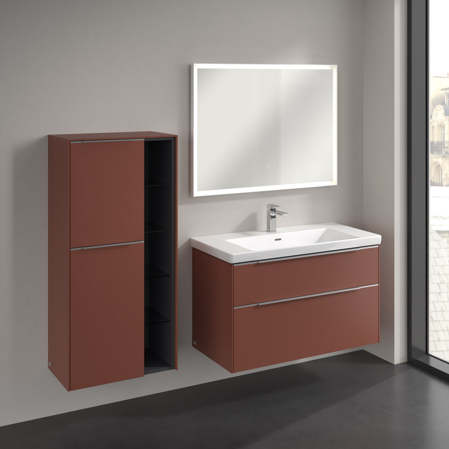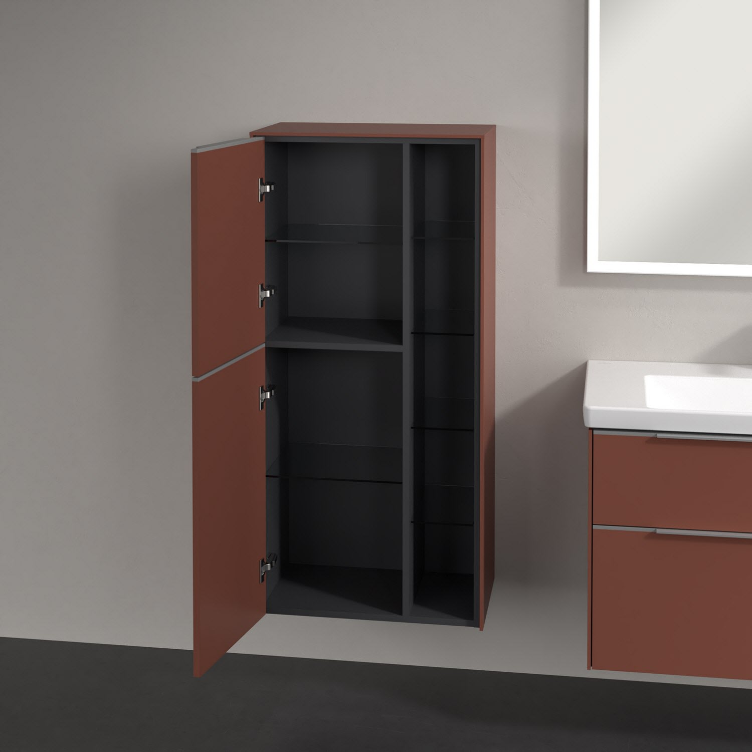Villeroy & Boch Subway 3.0 Mittelschrank 57,4 x 120 cm mit 1 offenen Fach und 2 Türen, Anschlag links