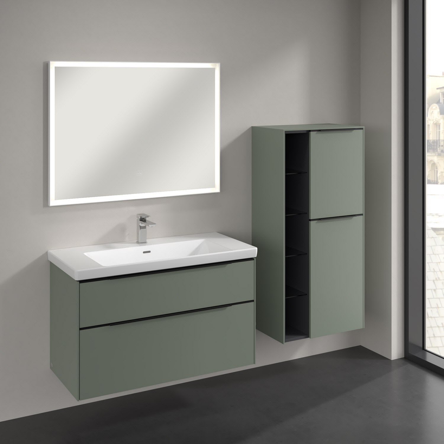 Villeroy & Boch Subway 3.0 Mittelschrank 57,4 x 120 cm mit 1 offenen Fach und 2 Türen, Anschlag rechts