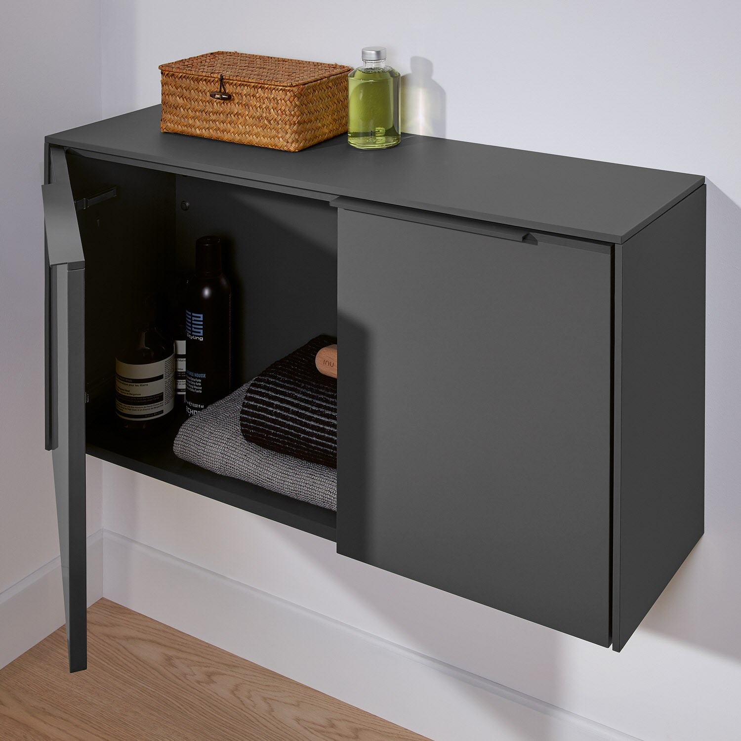 - Material Front und Korpus: Spanplatte mit Direktbeschichtung oder Lackierung und Anti-Fingerprint-Oberfläche