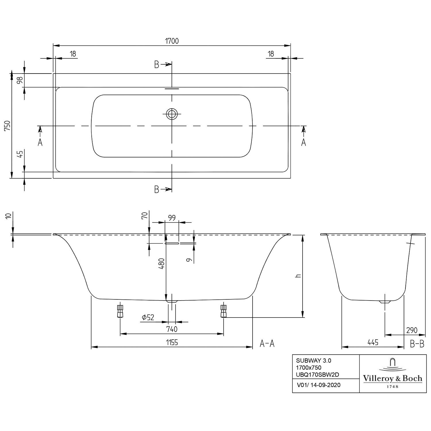 Villeroy & Boch Subway 3.0 Duo Badewanne 170 x 75 cm