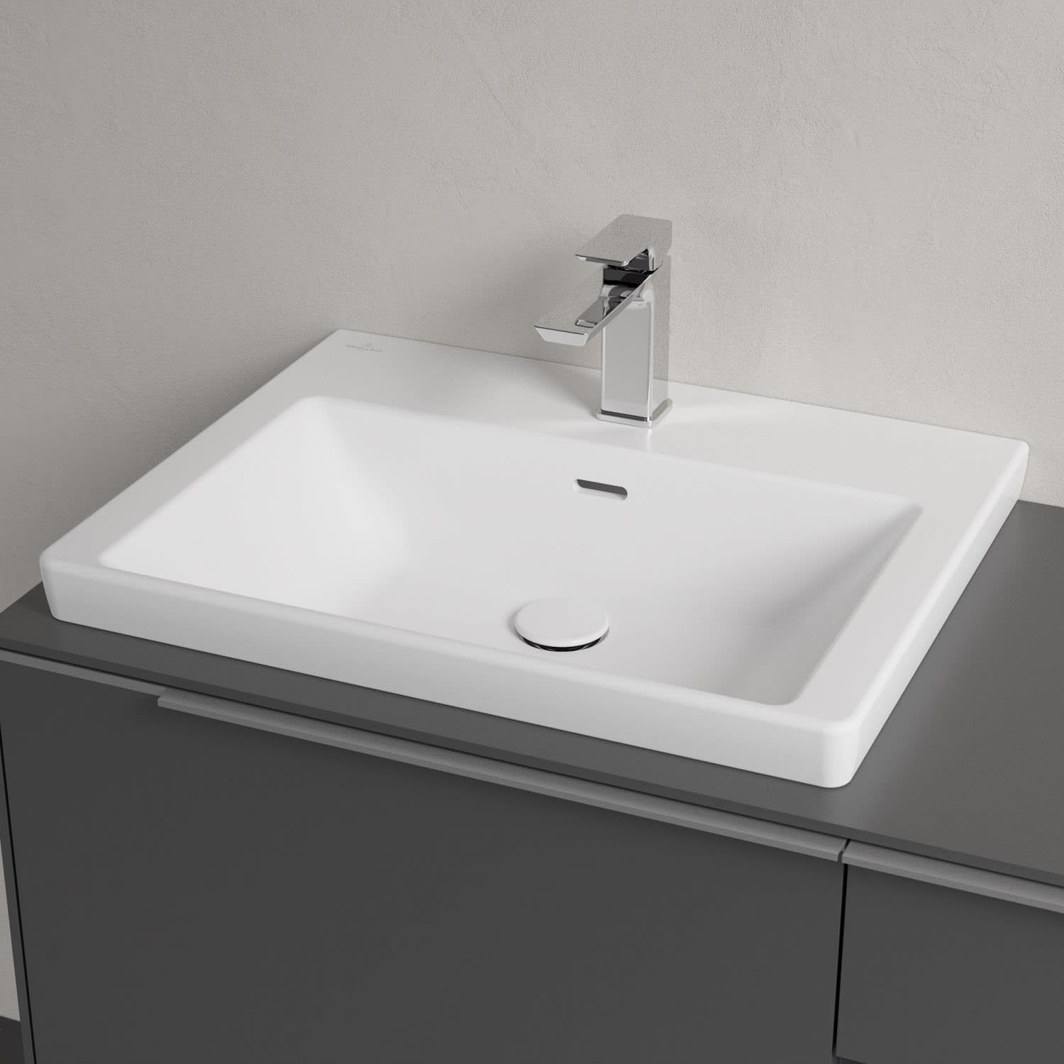 Der rechteckige Schrankwaschtisch zeigt sich gewohnt zeitlos. Sein schmaler Rand sorgt nicht nur für einen modernen Look, sondern auch für ein noch größeres Becken. Mit seiner Tiefe ermöglicht es eine vielfältige Nutzung auch abseits von Hände waschen und Zähne putzen: Es bietet beispielsweise ausreichend Platz zum Haare waschen oder Einweichen von Wäsche. Und auf der breiten Hahnlochbank findet sich genügend Ablagefläche für Seifenspender und andere Utensilien. Gefertigt ist das Waschbecken aus dem innovativen Werkstoff TitanCeram. Er verleiht ihm seine feinen Konturen und macht es besonders widerstandsfähig und robust – für lange Freude am Produkt!