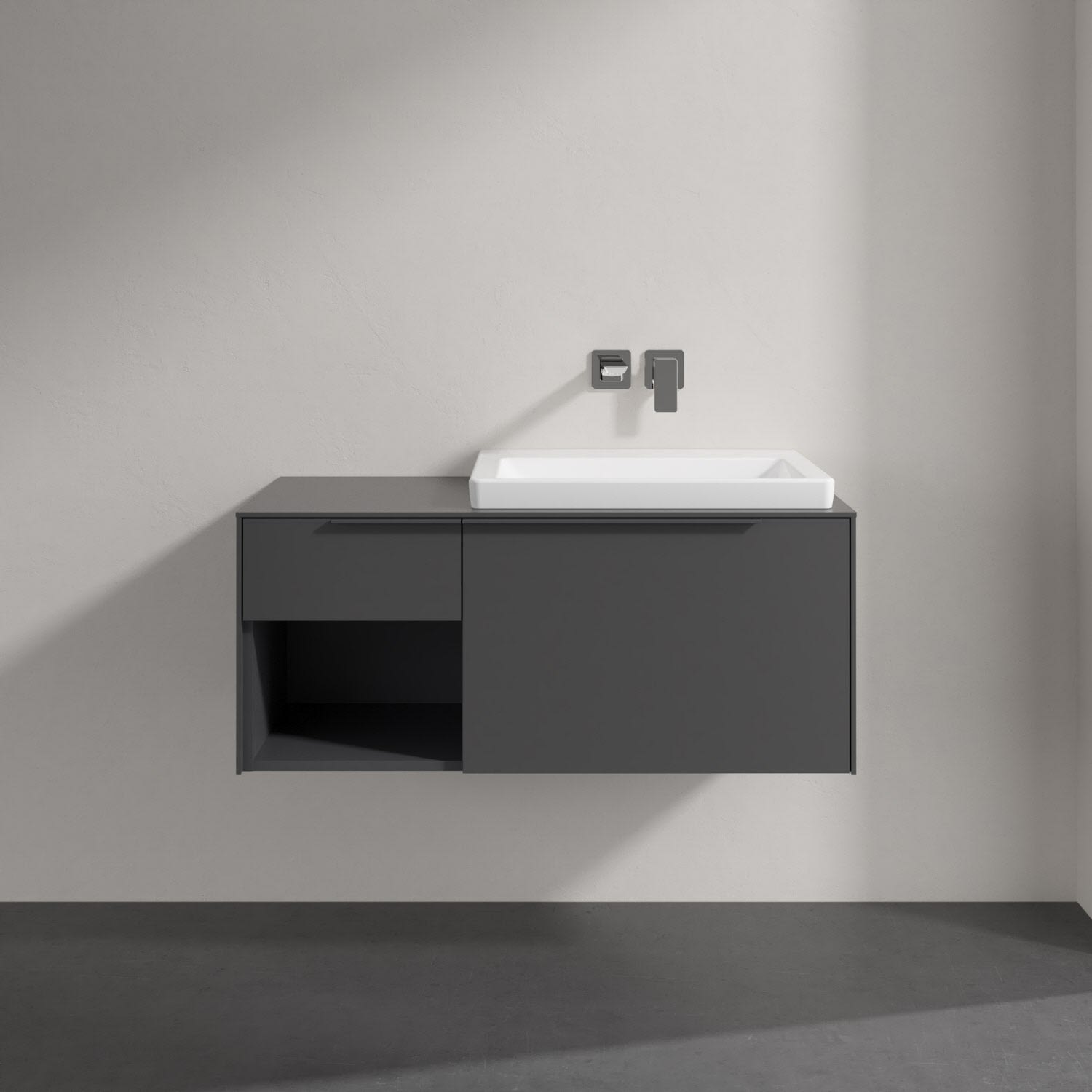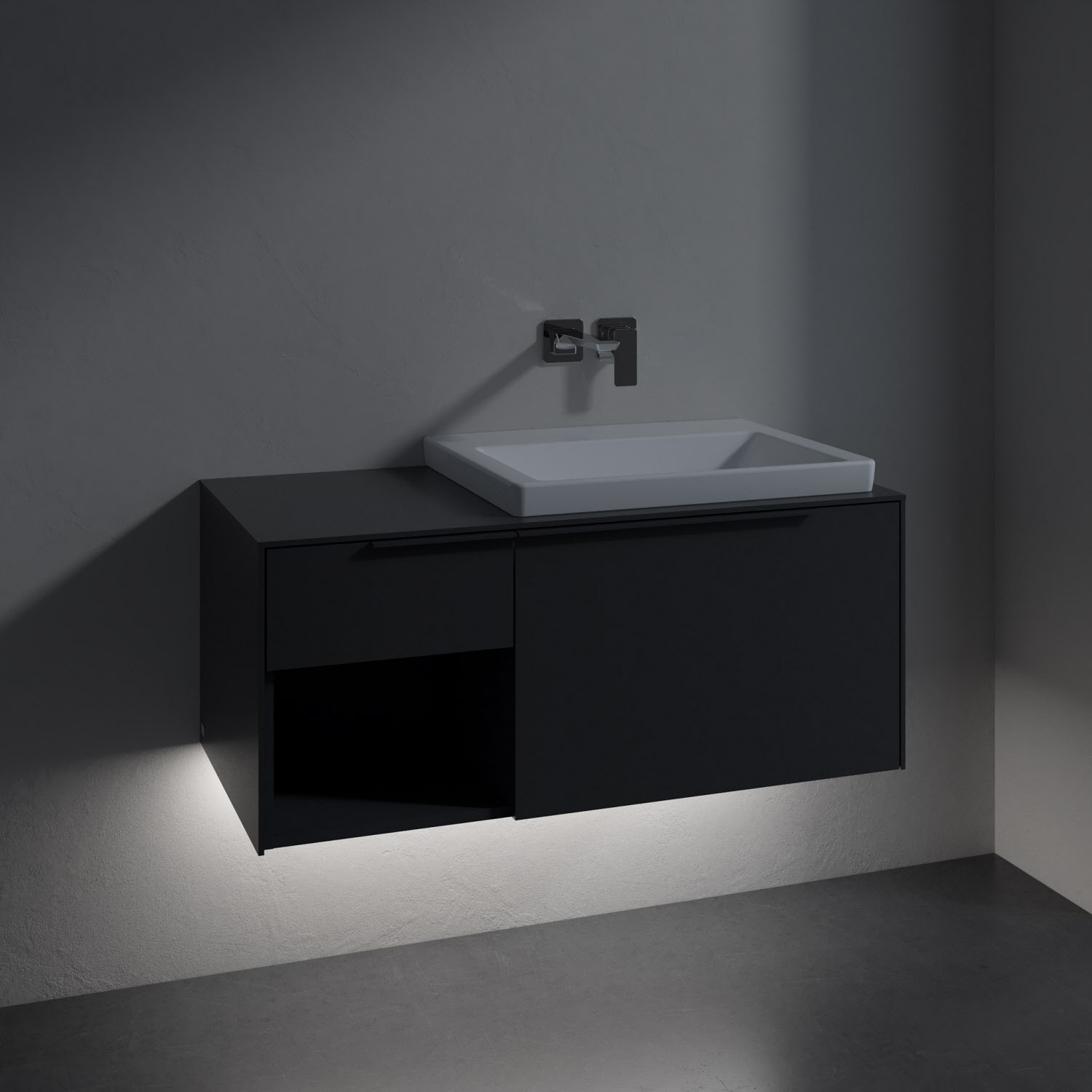 Villeroy & Boch Subway 3.0 Badmöbel-Set 100,1 cm mit Beleuchtung, Griff in Möbelfarbe, Waschbecken rechts