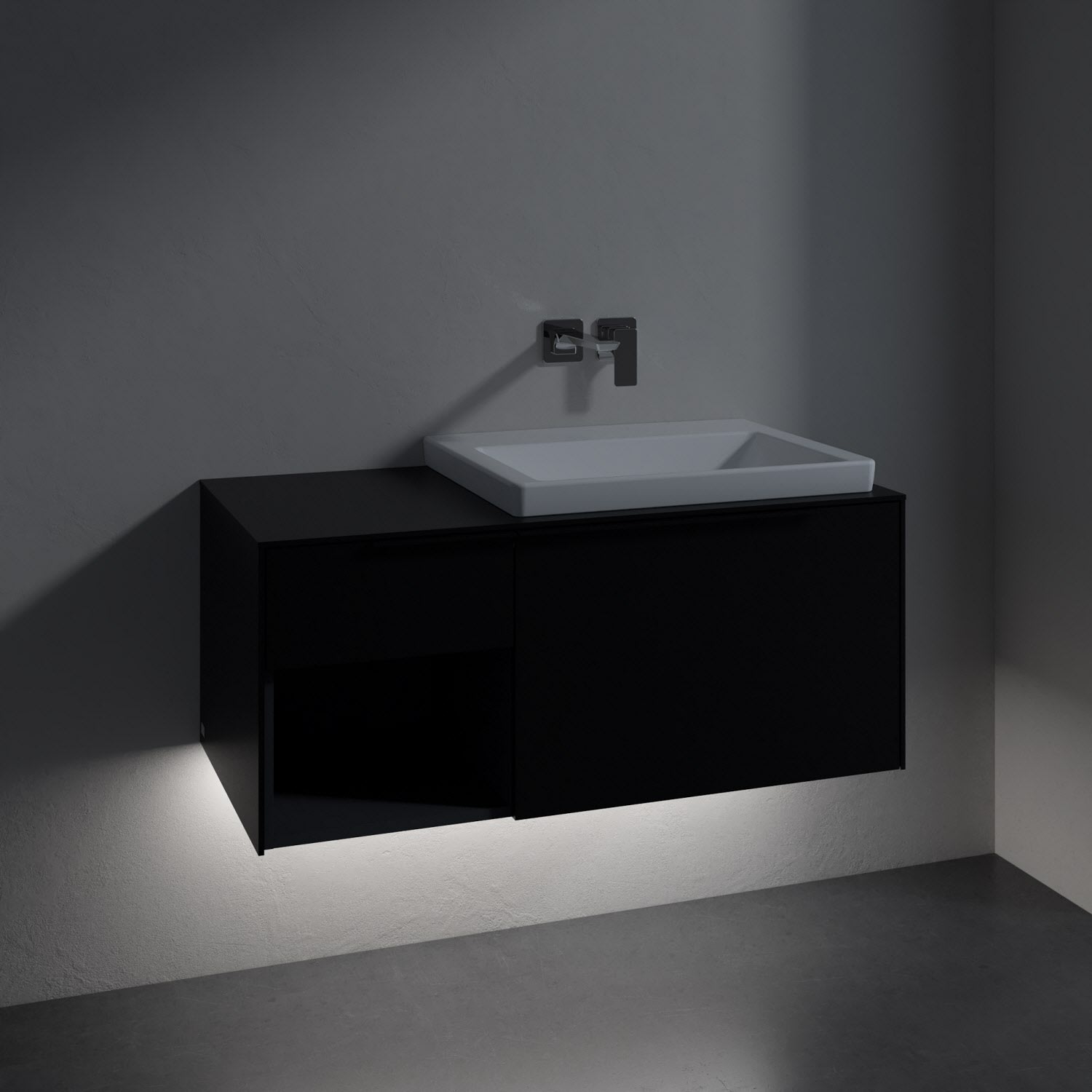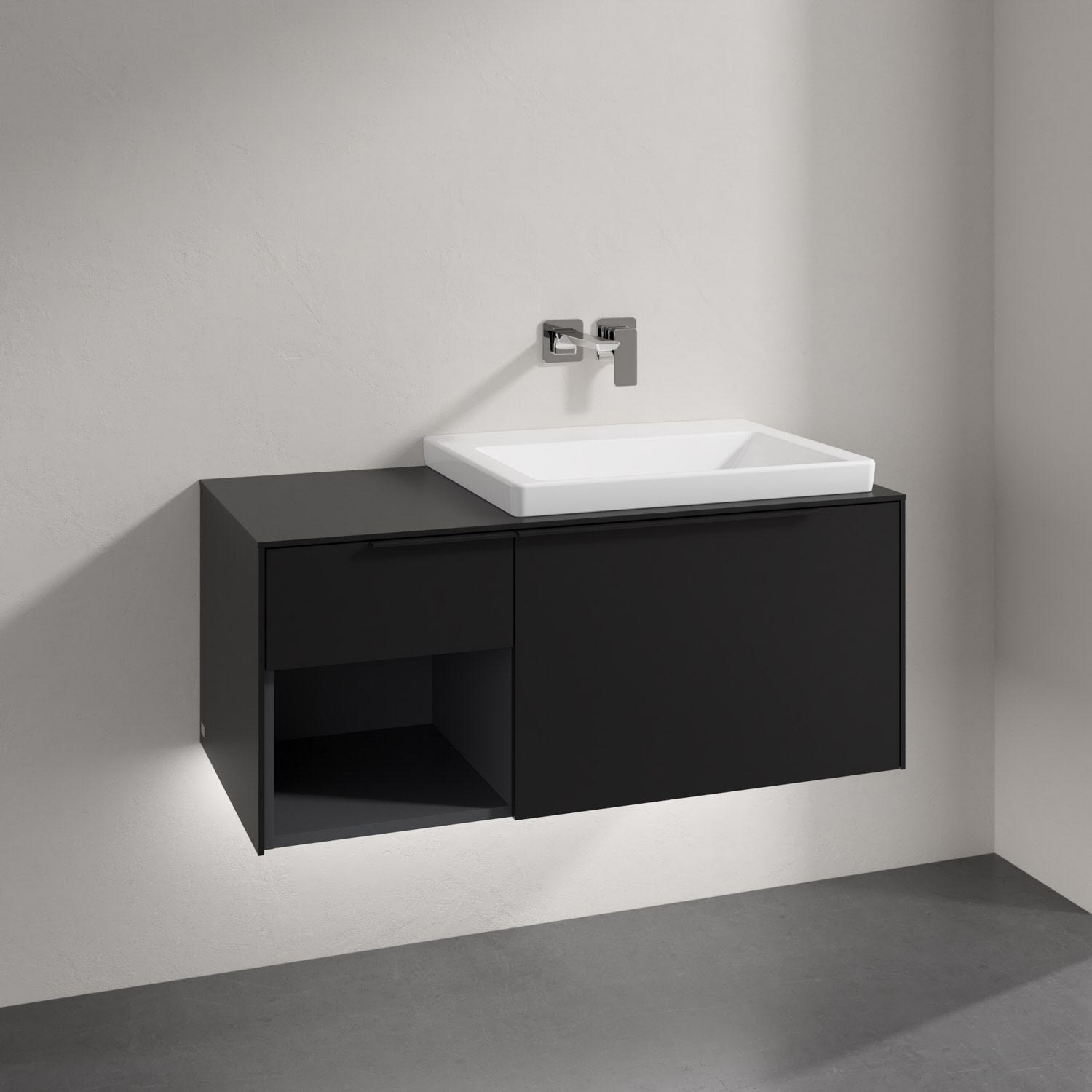 Villeroy & Boch Subway 3.0 Badmöbel-Set 100,1 cm mit Beleuchtung, Griff volcano black, Waschbecken rechts