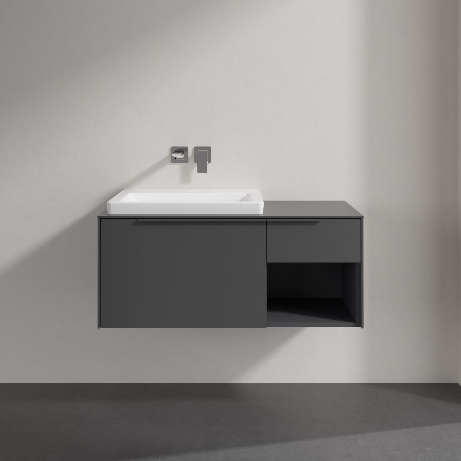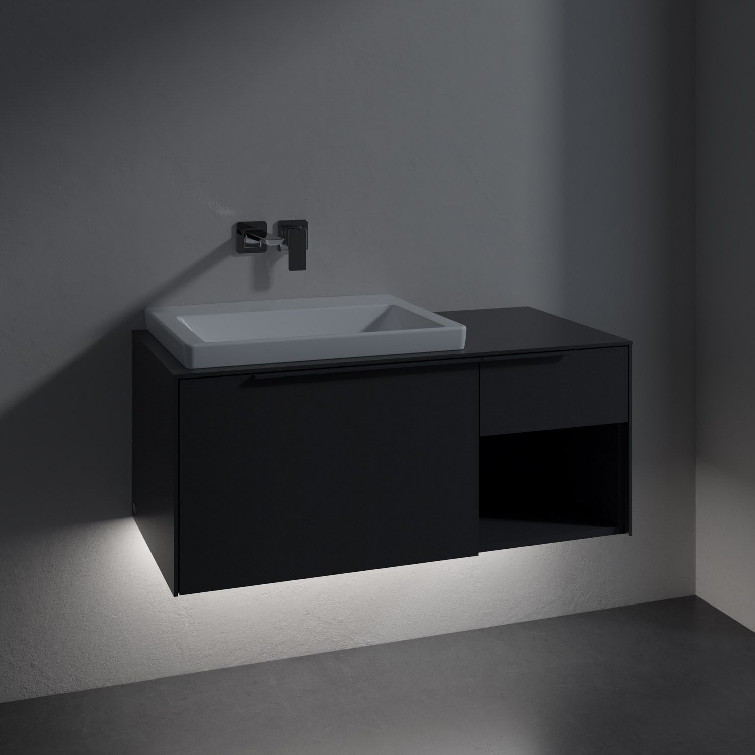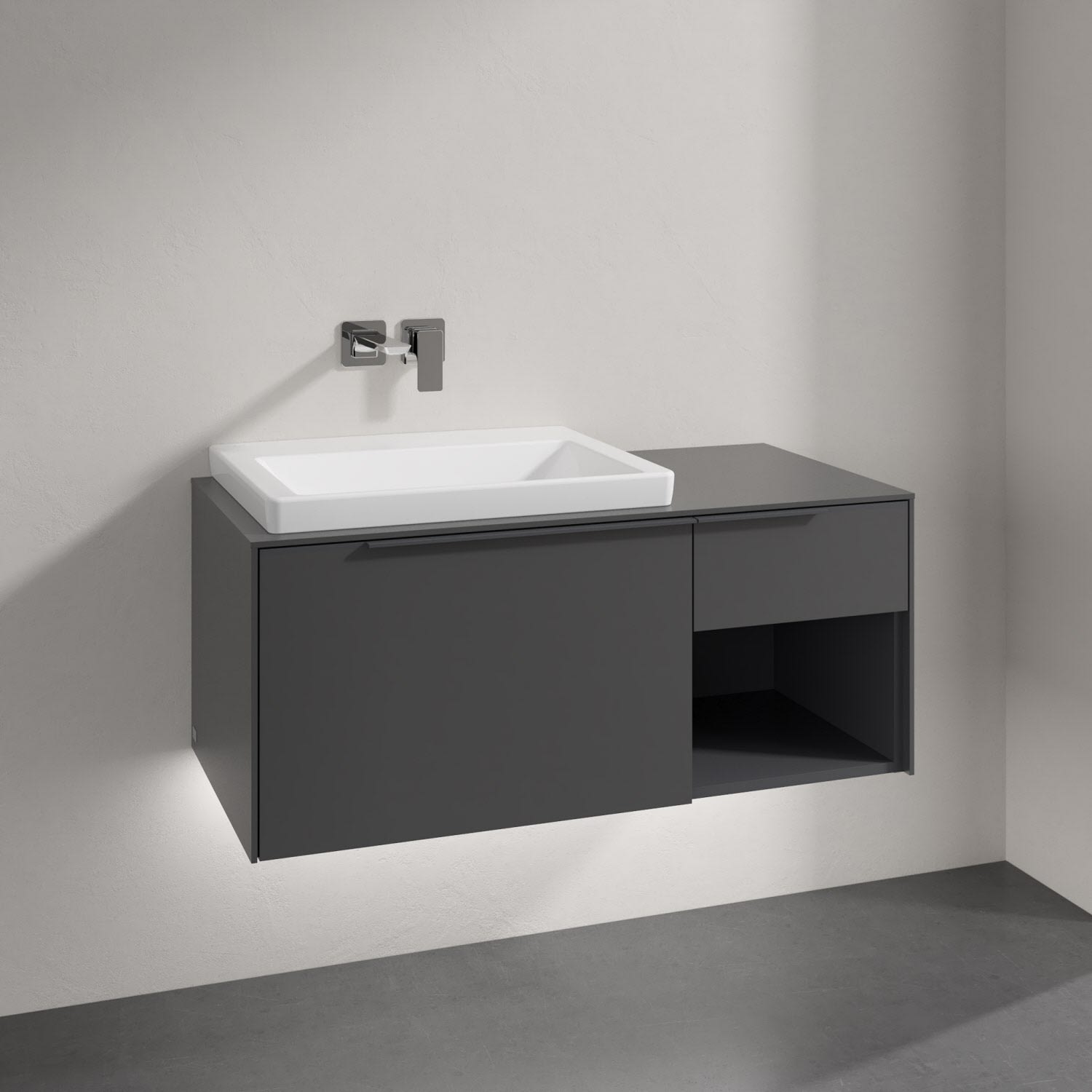 Villeroy & Boch Subway 3.0 Badmöbel-Set 100,1 cm mit Beleuchtung, Griff in Möbelfarbe, Waschbecken links
