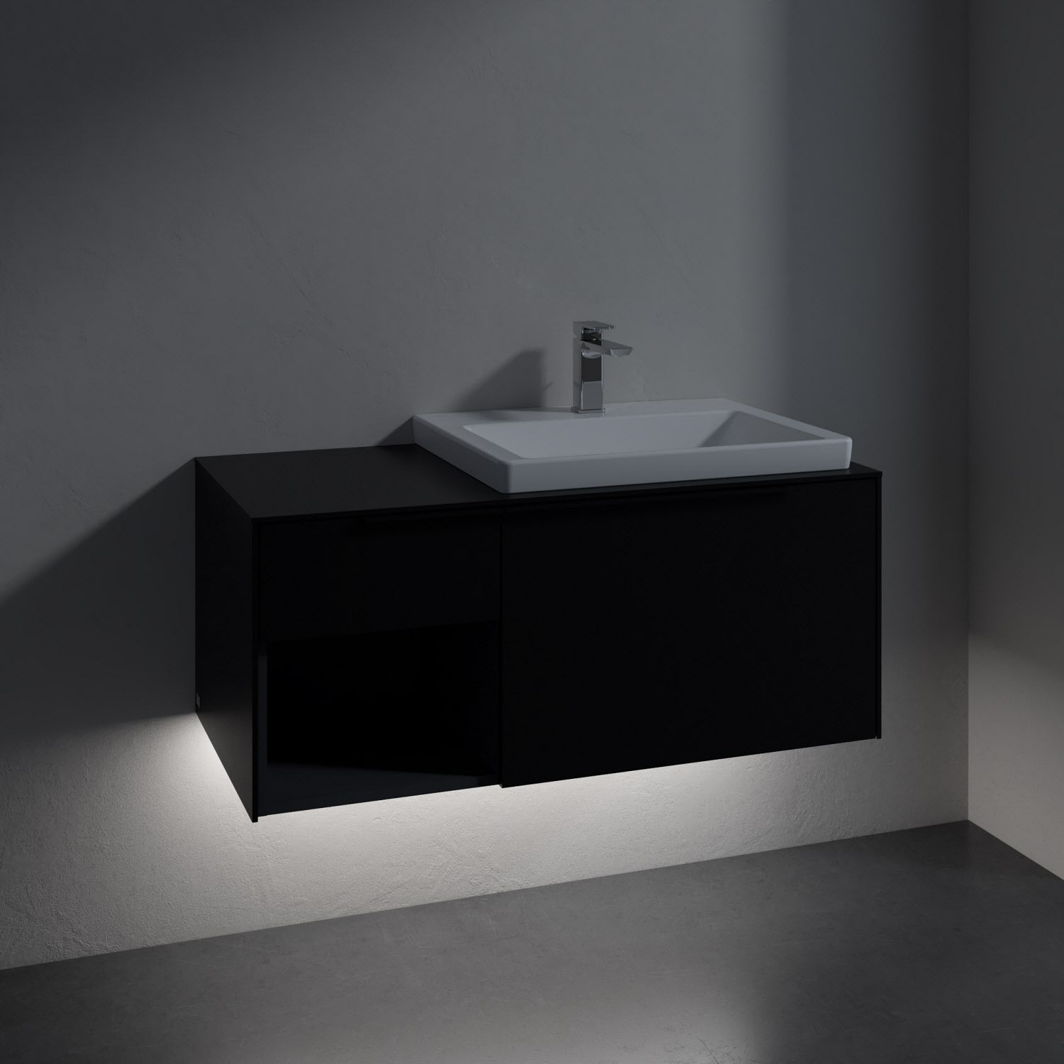 Villeroy & Boch Subway 3.0 Badmöbel-Set 100,1 cm mit Beleuchtung, Griff volcano black, Waschbecken rechts