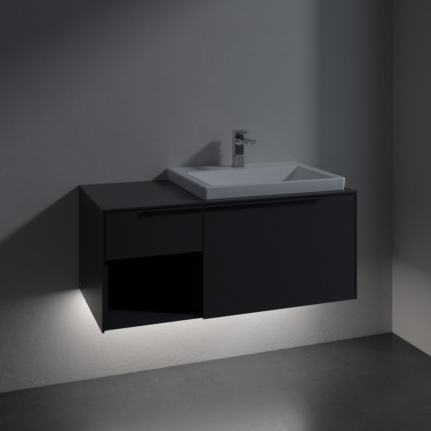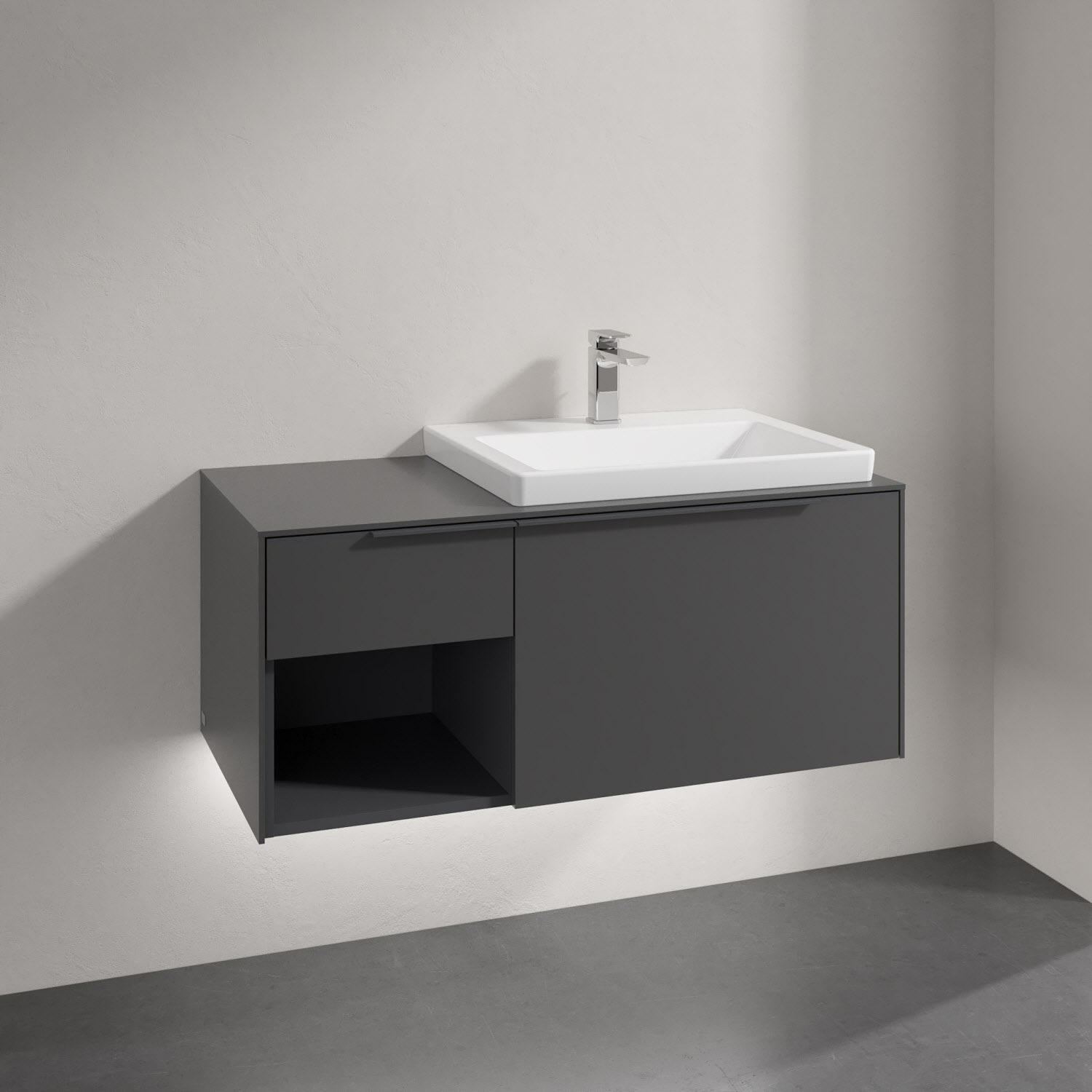 Villeroy & Boch Subway 3.0 Badmöbel-Set 100,1 cm mit Beleuchtung, Griff in Möbelfarbe, Waschbecken rechts