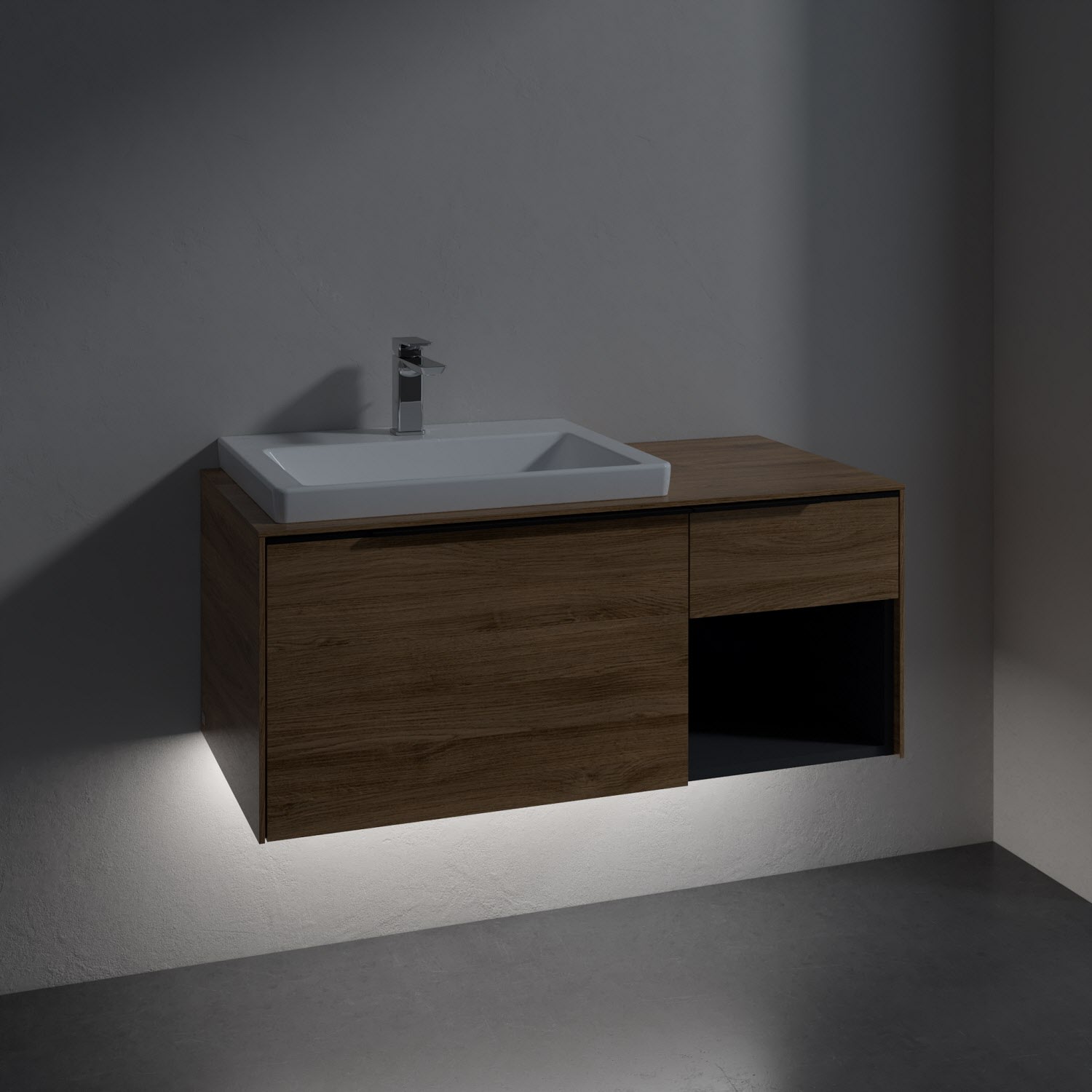 Villeroy & Boch Subway 3.0 Badmöbel-Set 100,1 cm mit Beleuchtung, Griff volcano black, Waschbecken links
