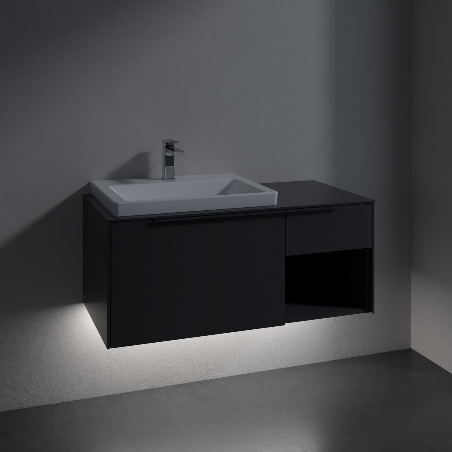 Villeroy & Boch Subway 3.0 Badmöbel-Set 100,1 cm mit Beleuchtung, Griff in Möbelfarbe, Waschbecken links