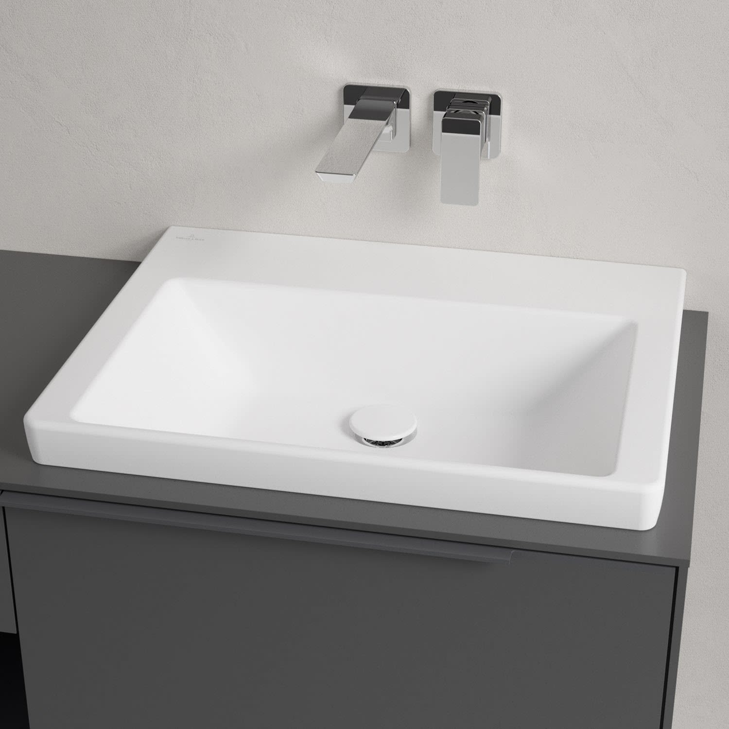 Der rechteckige Schrankwaschtisch zeigt sich gewohnt zeitlos. Sein schmaler Rand sorgt nicht nur für einen modernen Look, sondern auch für ein noch größeres Becken. Mit seiner Tiefe ermöglicht es eine vielfältige Nutzung auch abseits von Hände waschen und Zähne putzen: Es bietet beispielsweise ausreichend Platz zum Haare waschen oder Einweichen von Wäsche. Und auf der breiten Hahnlochbank findet sich genügend Ablagefläche für Seifenspender und andere Utensilien. Gefertigt ist das Waschbecken aus dem innovativen Werkstoff TitanCeram. Er verleiht ihm seine feinen Konturen und macht es besonders widerstandsfähig und robust – für lange Freude am Produkt!