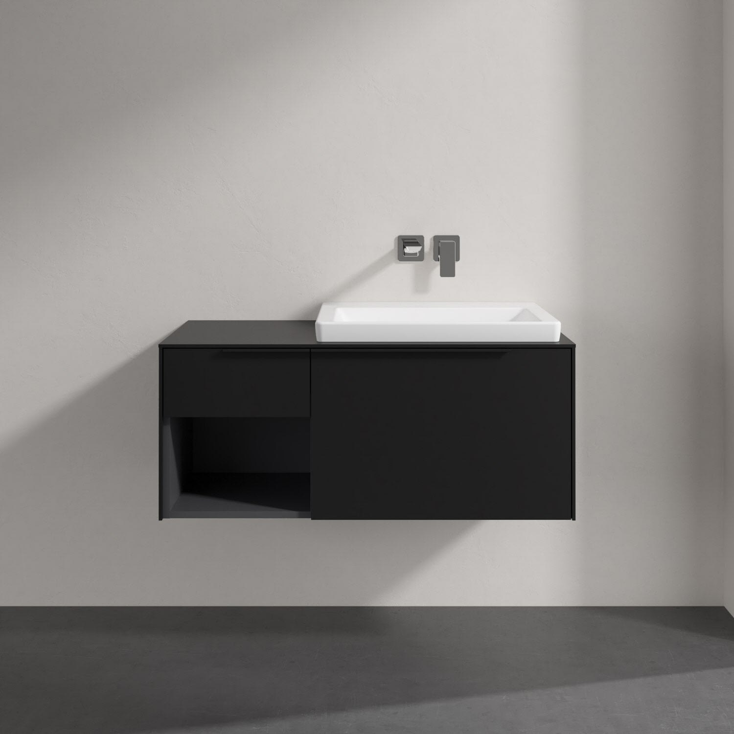 Villeroy & Boch Subway 3.0 Badmöbel-Set 100,1 cm mit Beleuchtung, Griff volcano black, Waschbecken rechts mit CeramicPlus