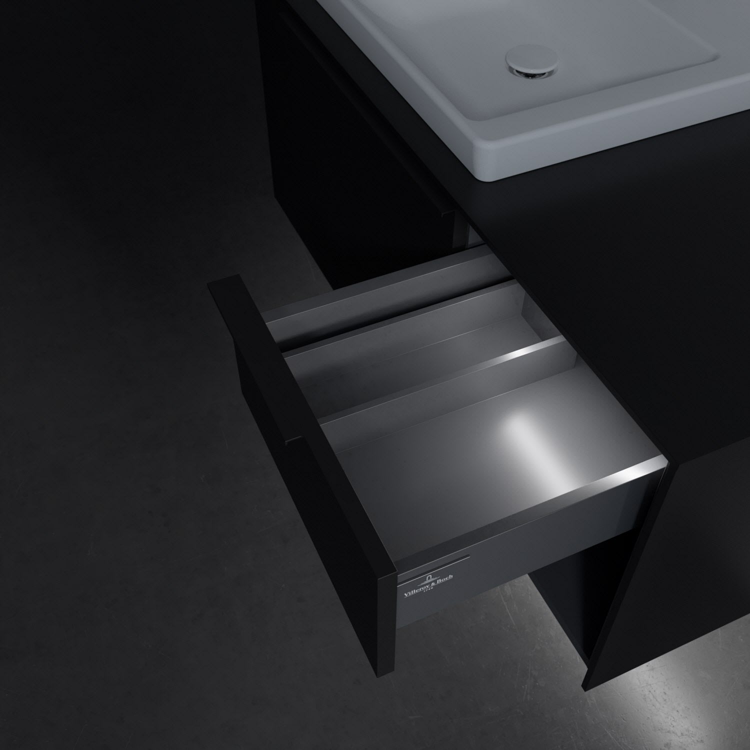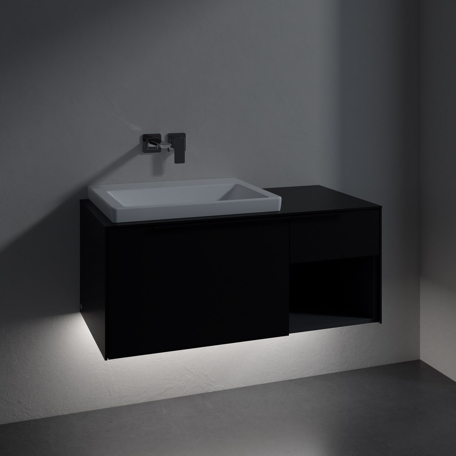 Villeroy & Boch Subway 3.0 Badmöbel-Set 100,1 cm mit Beleuchtung, Griff volcano black, Waschbecken links mit CeramicPlus