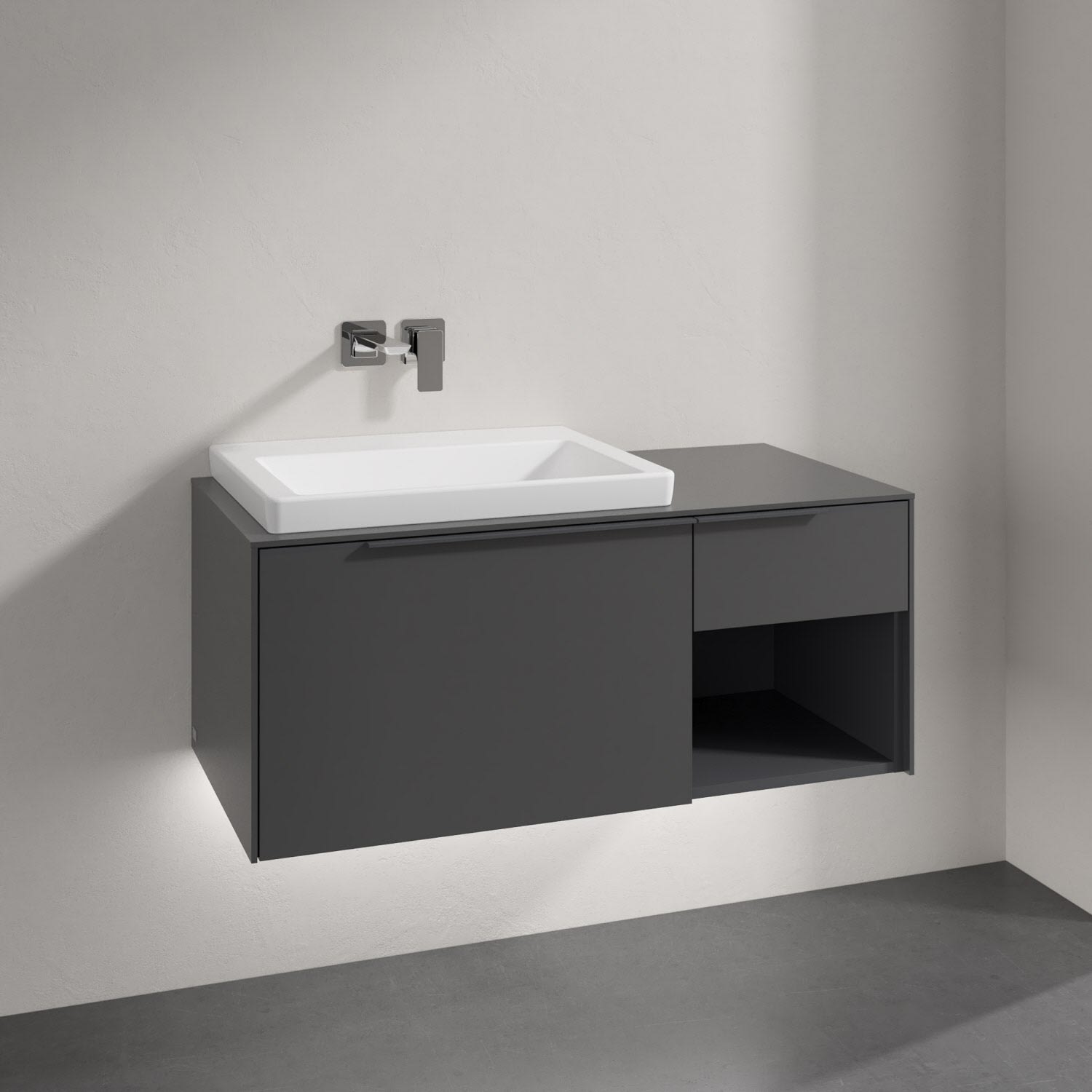 Villeroy & Boch Subway 3.0 Badmöbel-Set 100,1 cm mit Beleuchtung, Griff in Möbelfarbe, Waschbecken links mit CeramicPlus