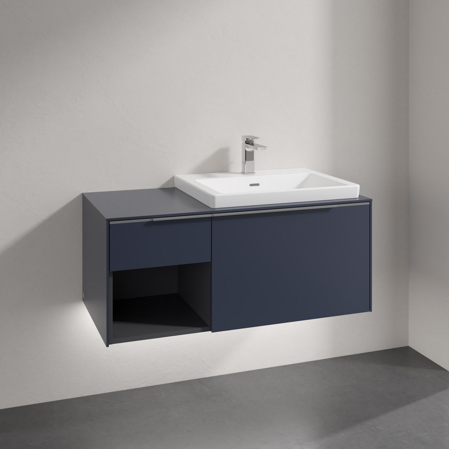 Villeroy & Boch Subway 3.0 Badmöbel-Set 100,1 cm mit Beleuchtung, Waschbecken rechts mit CeramicPlus