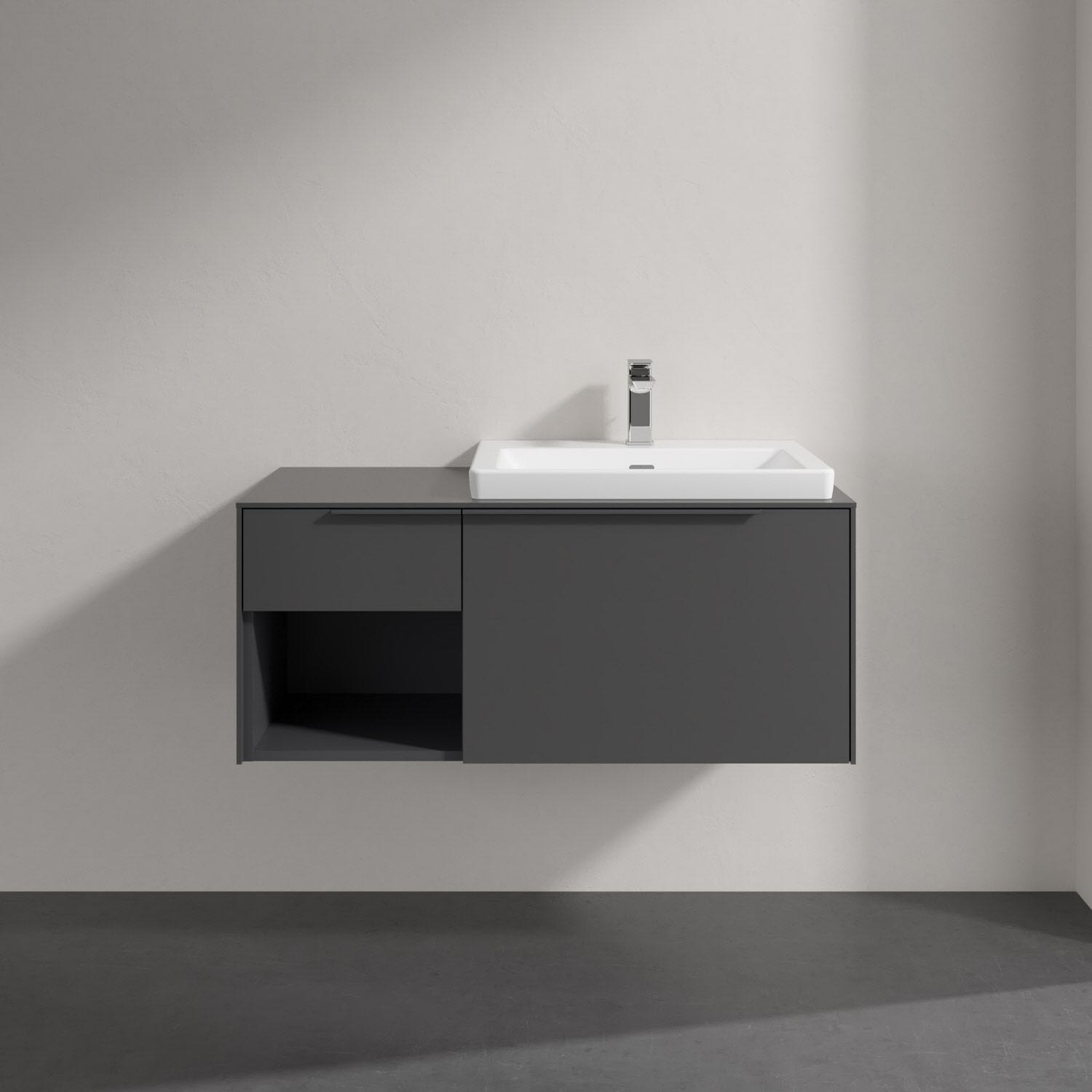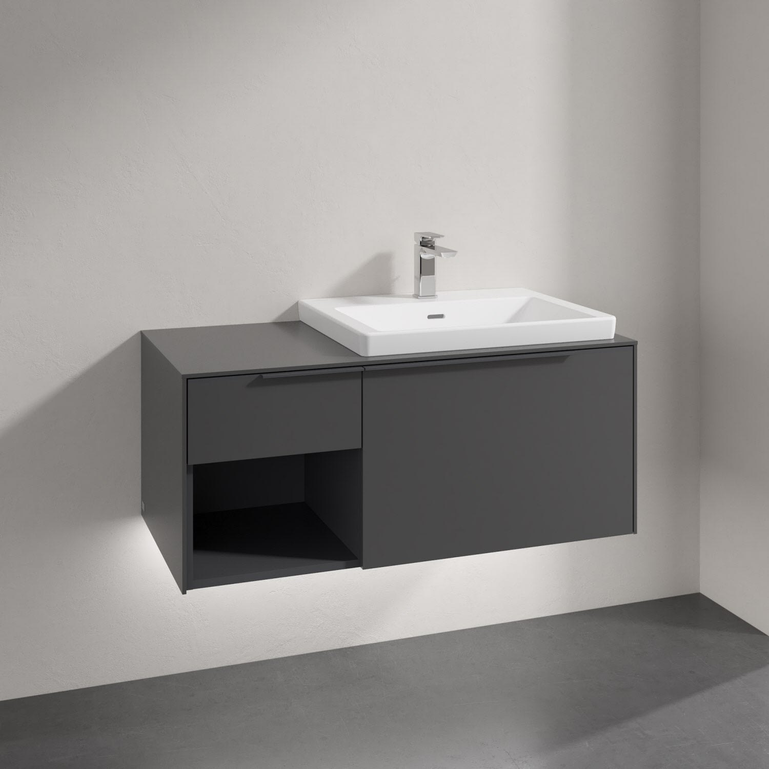 Villeroy & Boch Subway 3.0 Badmöbel-Set 100,1 cm mit Beleuchtung, Griff in Möbelfarbe, Waschbecken rechts mit CeramicPlus