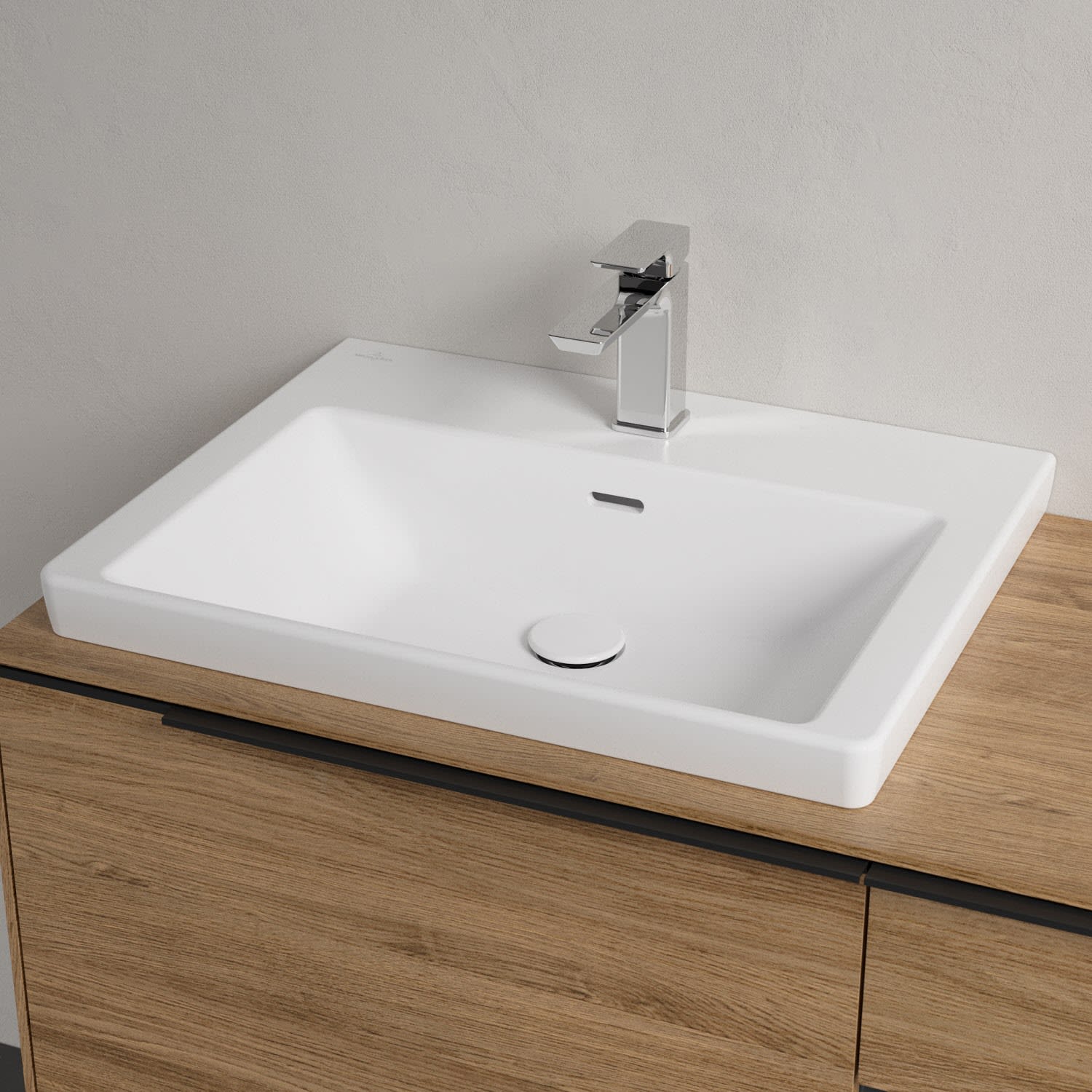 Der rechteckige Schrankwaschtisch zeigt sich gewohnt zeitlos. Sein schmaler Rand sorgt nicht nur für einen modernen Look, sondern auch für ein noch größeres Becken. Mit seiner Tiefe ermöglicht es eine vielfältige Nutzung auch abseits von Hände waschen und Zähne putzen: Es bietet beispielsweise ausreichend Platz zum Haare waschen oder Einweichen von Wäsche. Und auf der breiten Hahnlochbank findet sich genügend Ablagefläche für Seifenspender und andere Utensilien. Gefertigt ist das Waschbecken aus dem innovativen Werkstoff TitanCeram. Er verleiht ihm seine feinen Konturen und macht es besonders widerstandsfähig und robust – für lange Freude am Produkt!