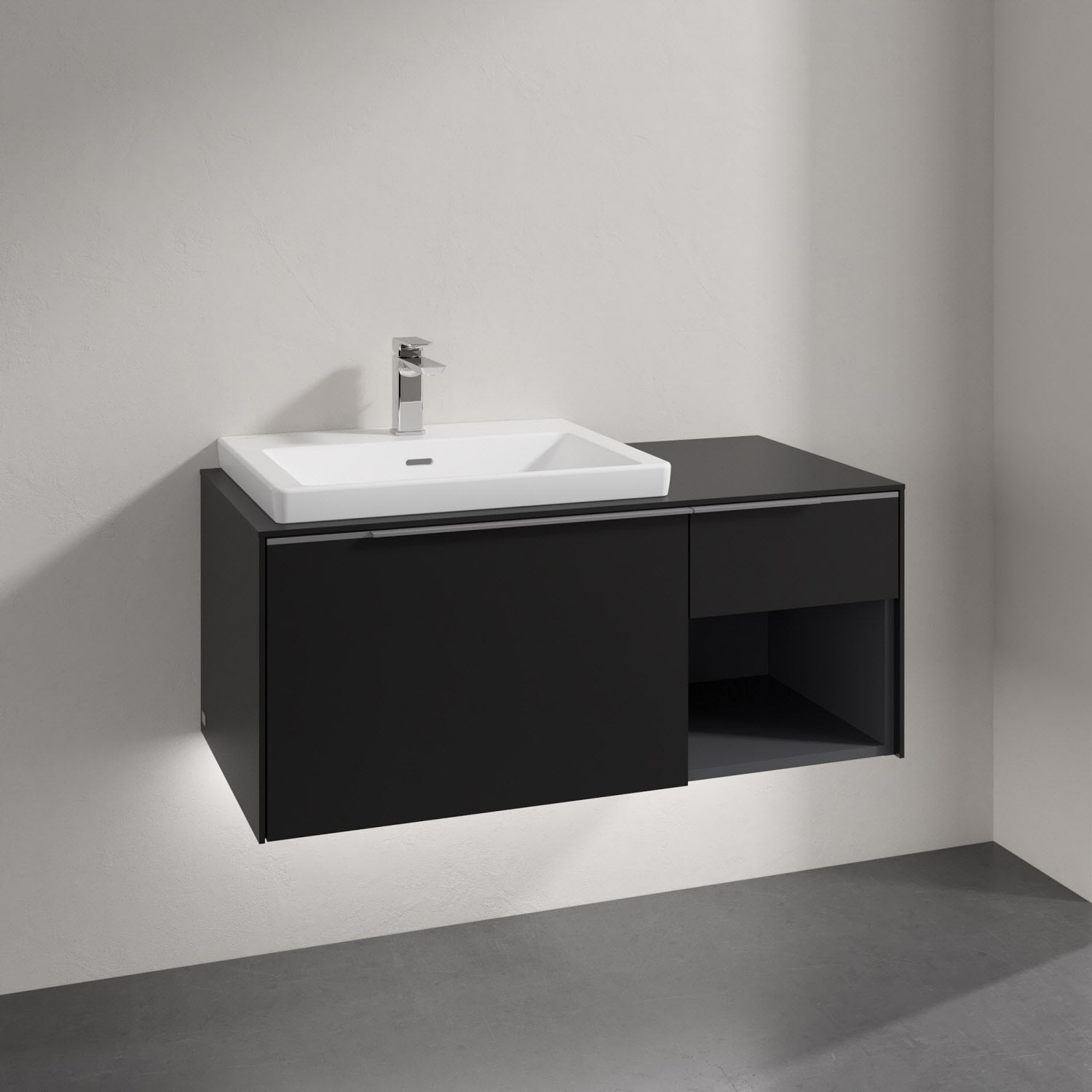 Villeroy & Boch Subway 3.0 Badmöbel-Set 100,1 cm mit Beleuchtung, Waschbecken links mit CeramicPlus