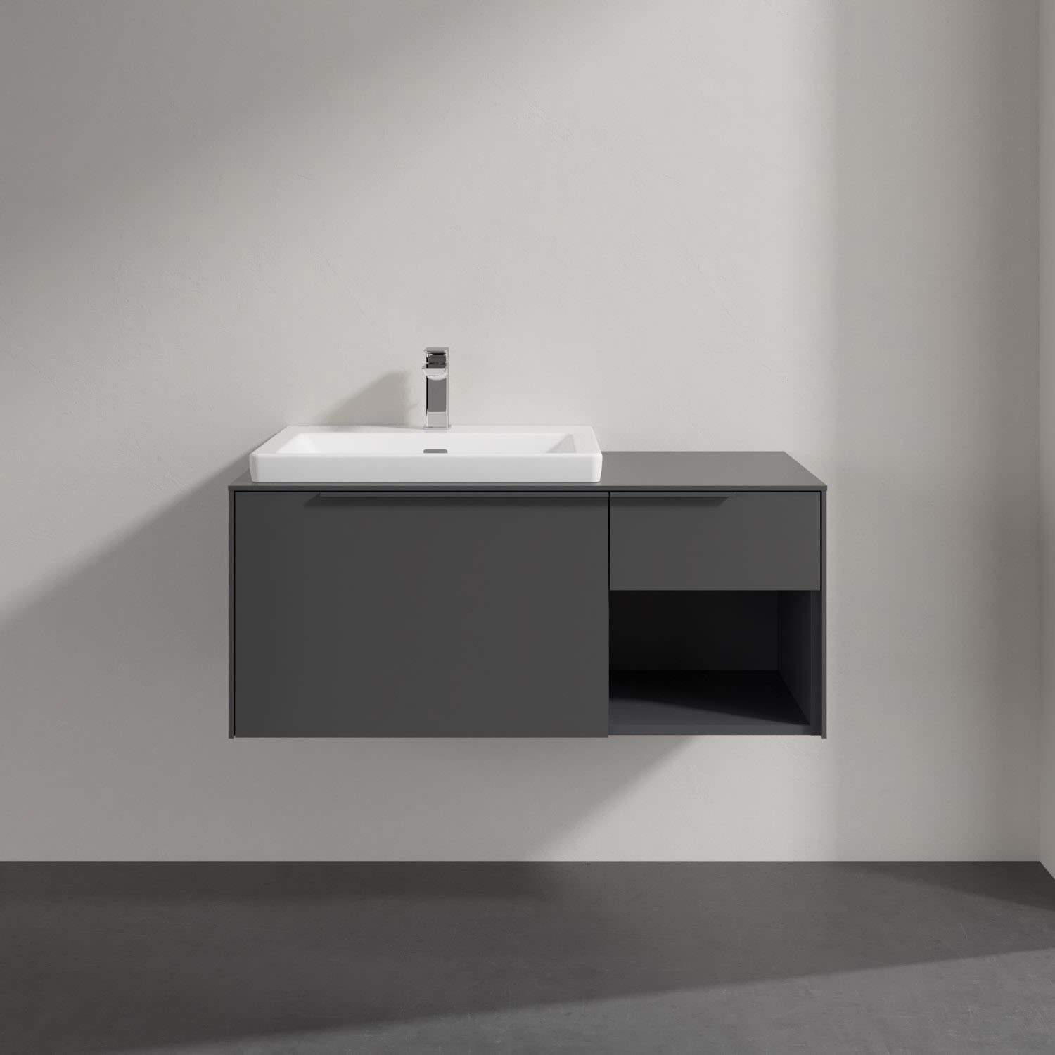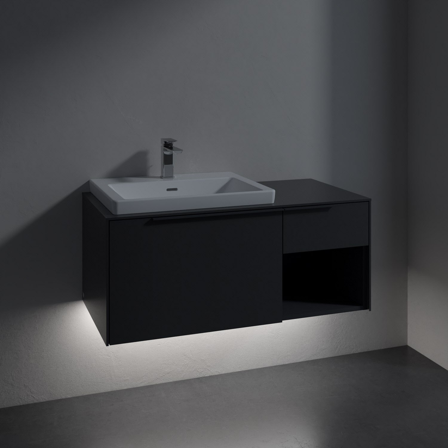 Villeroy & Boch Subway 3.0 Badmöbel-Set 100,1 cm mit Beleuchtung, Griff in Möbelfarbe, Waschbecken links mit CeramicPlus