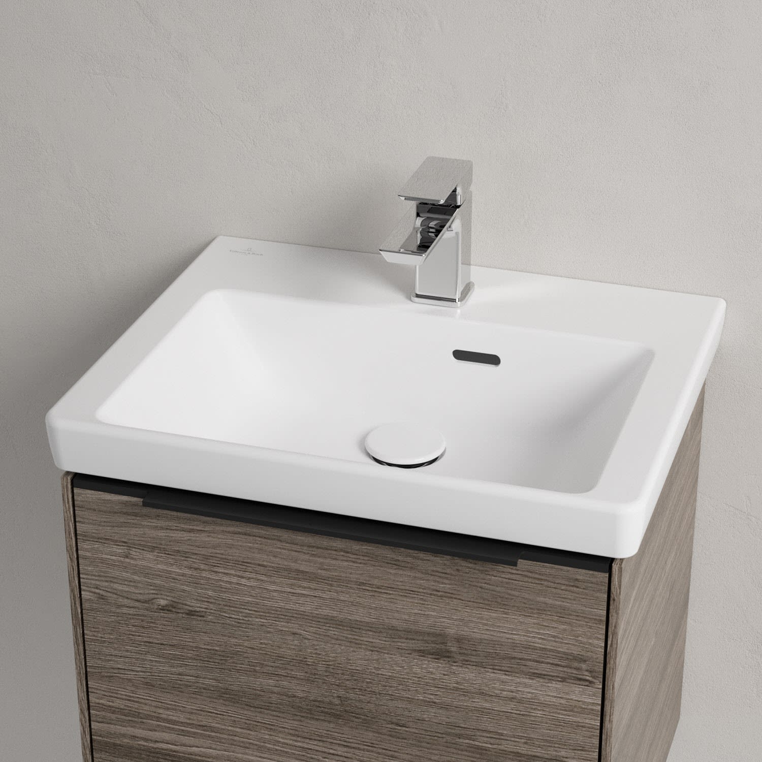 Das rechteckige Handwaschbecken zeigt sich gewohnt zeitlos. So passt es perfekt in die unterschiedlichsten Badsituationen. Sein schmaler Rand sorgt nicht nur für einen modernen Look, sondern auch für ein größeres Becken. Trotz kompakter Größe erfüllt es alle Anforderungen des Alltags und bietet ausreichend Platz zum Hände waschen oder Zähne putzen. Auf der Hahnlochbank findet sich genügend Platz für Seifenspender und andere Utensilien.