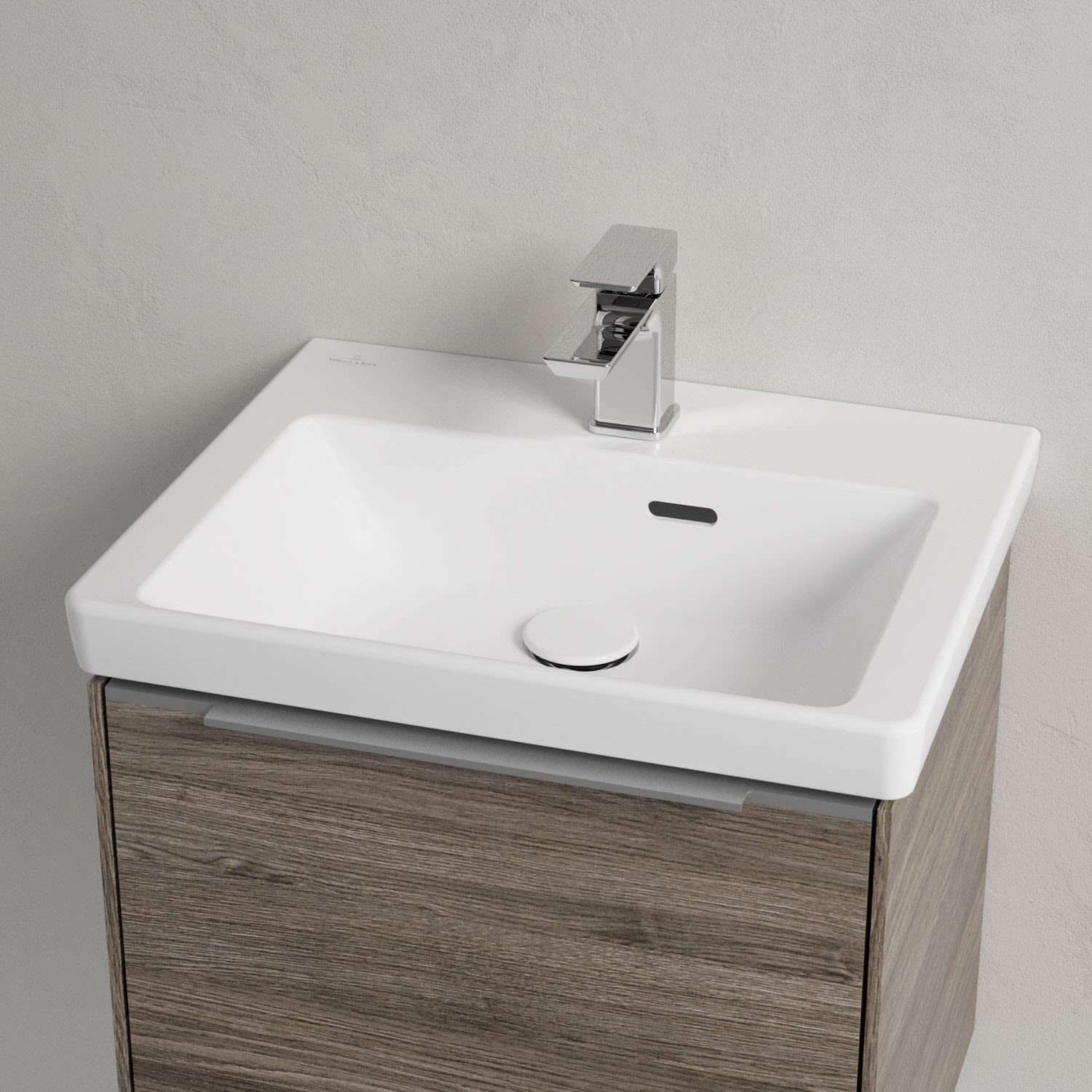 Das rechteckige Handwaschbecken zeigt sich gewohnt zeitlos. So passt es perfekt in die unterschiedlichsten Badsituationen. Sein schmaler Rand sorgt nicht nur für einen modernen Look, sondern auch für ein größeres Becken. Trotz kompakter Größe erfüllt es alle Anforderungen des Alltags und bietet ausreichend Platz zum Hände waschen oder Zähne putzen. Auf der Hahnlochbank findet sich genügend Platz für Seifenspender und andere Utensilien.