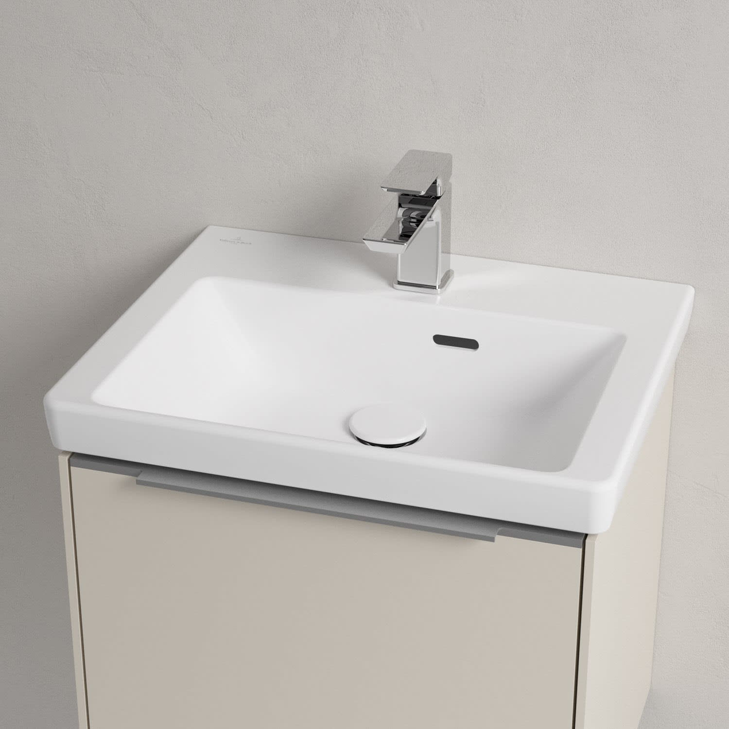 Das rechteckige Handwaschbecken zeigt sich gewohnt zeitlos. So passt es perfekt in die unterschiedlichsten Badsituationen. Sein schmaler Rand sorgt nicht nur für einen modernen Look, sondern auch für ein größeres Becken. Trotz kompakter Größe erfüllt es alle Anforderungen des Alltags und bietet ausreichend Platz zum Hände waschen oder Zähne putzen. Auf der Hahnlochbank findet sich genügend Platz für Seifenspender und andere Utensilien.