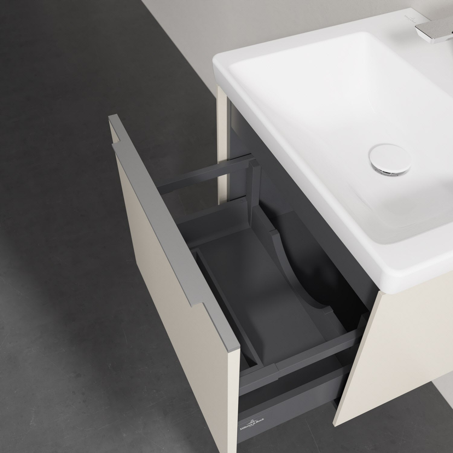 - kein Umfallen oder Verrutschen von Pflegeprodukten in den Schubladen dank rutschhemmendem Boden