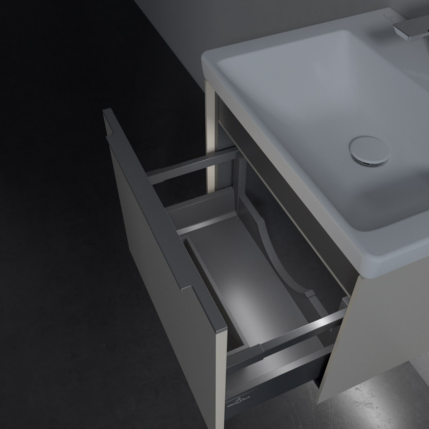 - kein Umfallen oder Verrutschen von Pflegeprodukten in den Schubladen dank rutschhemmendem Boden