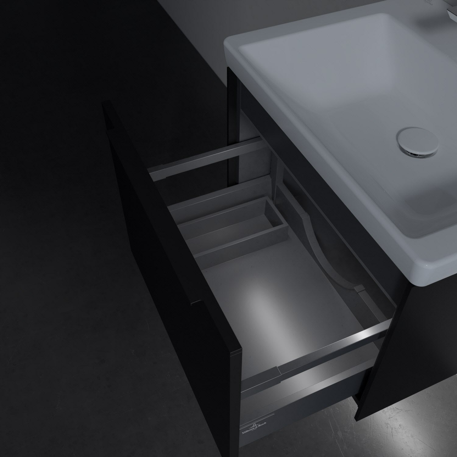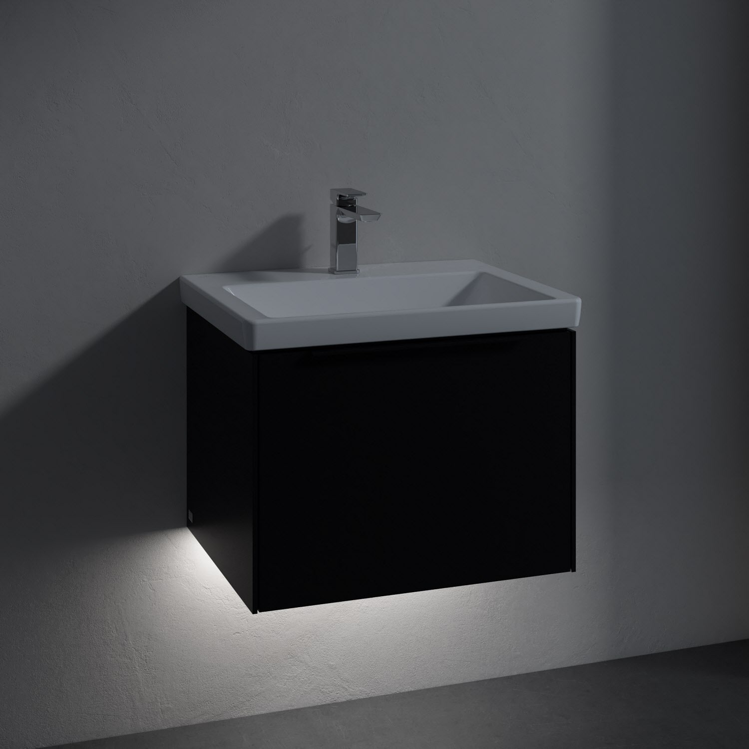 Villeroy & Boch Subway 3.0 Badmöbel-Set 60 cm mit Beleuchtung, Griff volcano black, 1 Auszug