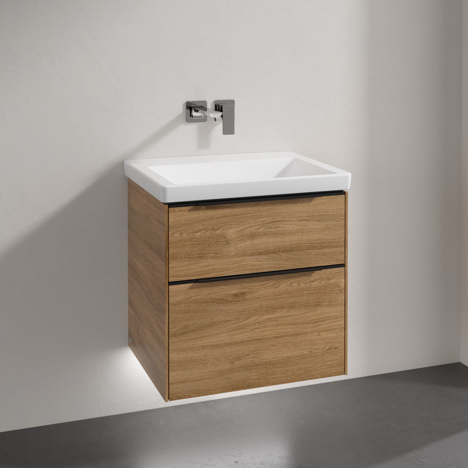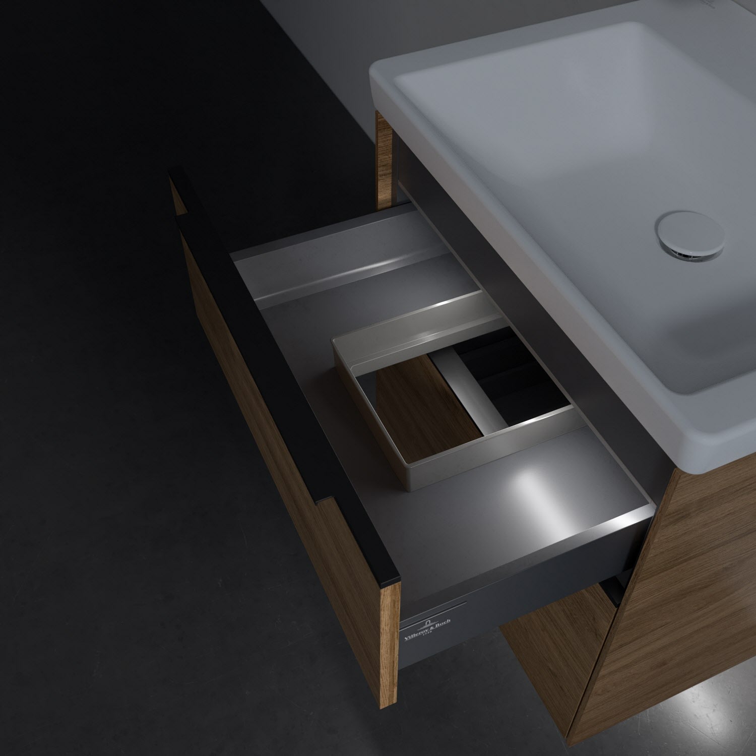 Villeroy & Boch Subway 3.0 Badmöbel-Set 60 cm mit Beleuchtung, Griff volcano black, 2 Auszüge