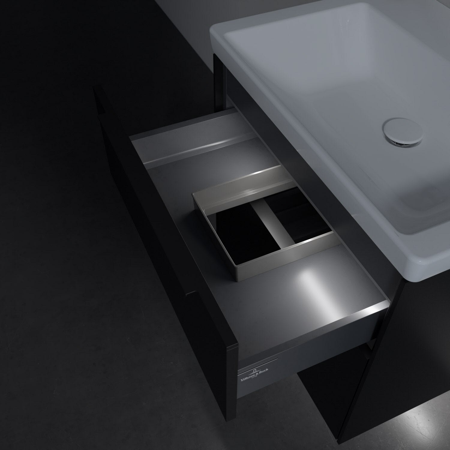 Villeroy & Boch Subway 3.0 Badmöbel-Set 65 cm mit Beleuchtung, Griff volcano black, 2 Auszüge