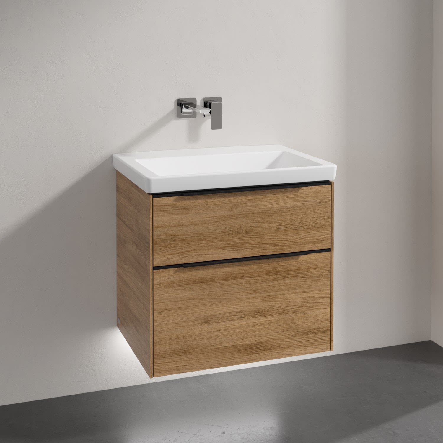 Villeroy & Boch Subway 3.0 Badmöbel-Set 65 cm mit Beleuchtung, Griff volcano black, 2 Auszüge