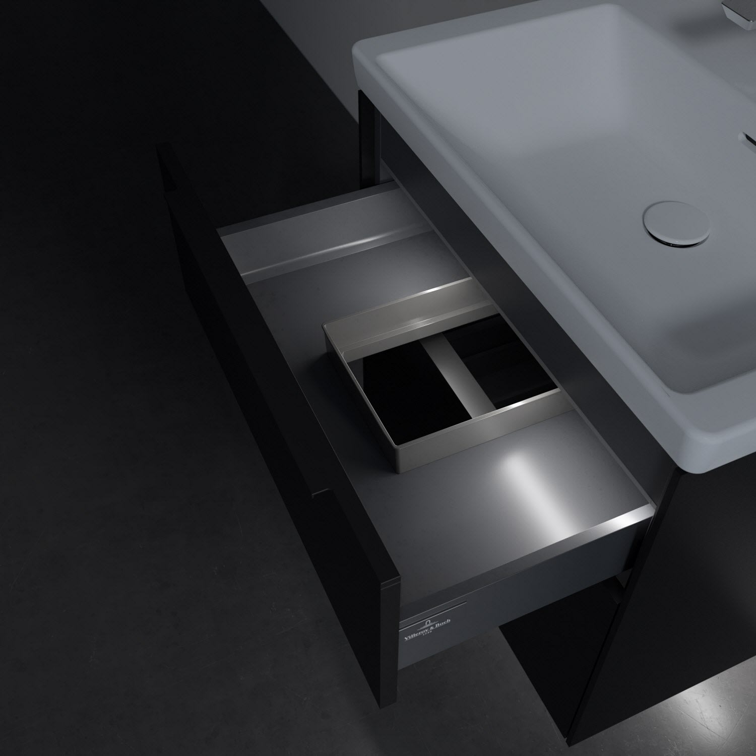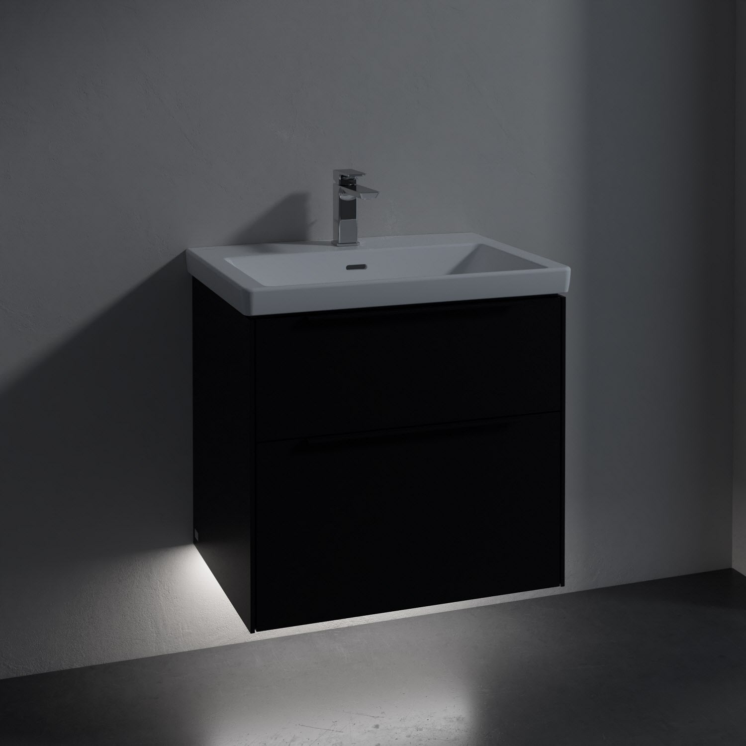 Villeroy & Boch Subway 3.0 Badmöbel-Set 65 cm mit Beleuchtung, Griff volcano black, 2 Auszüge
