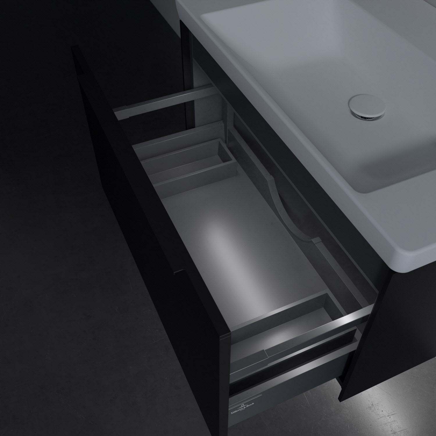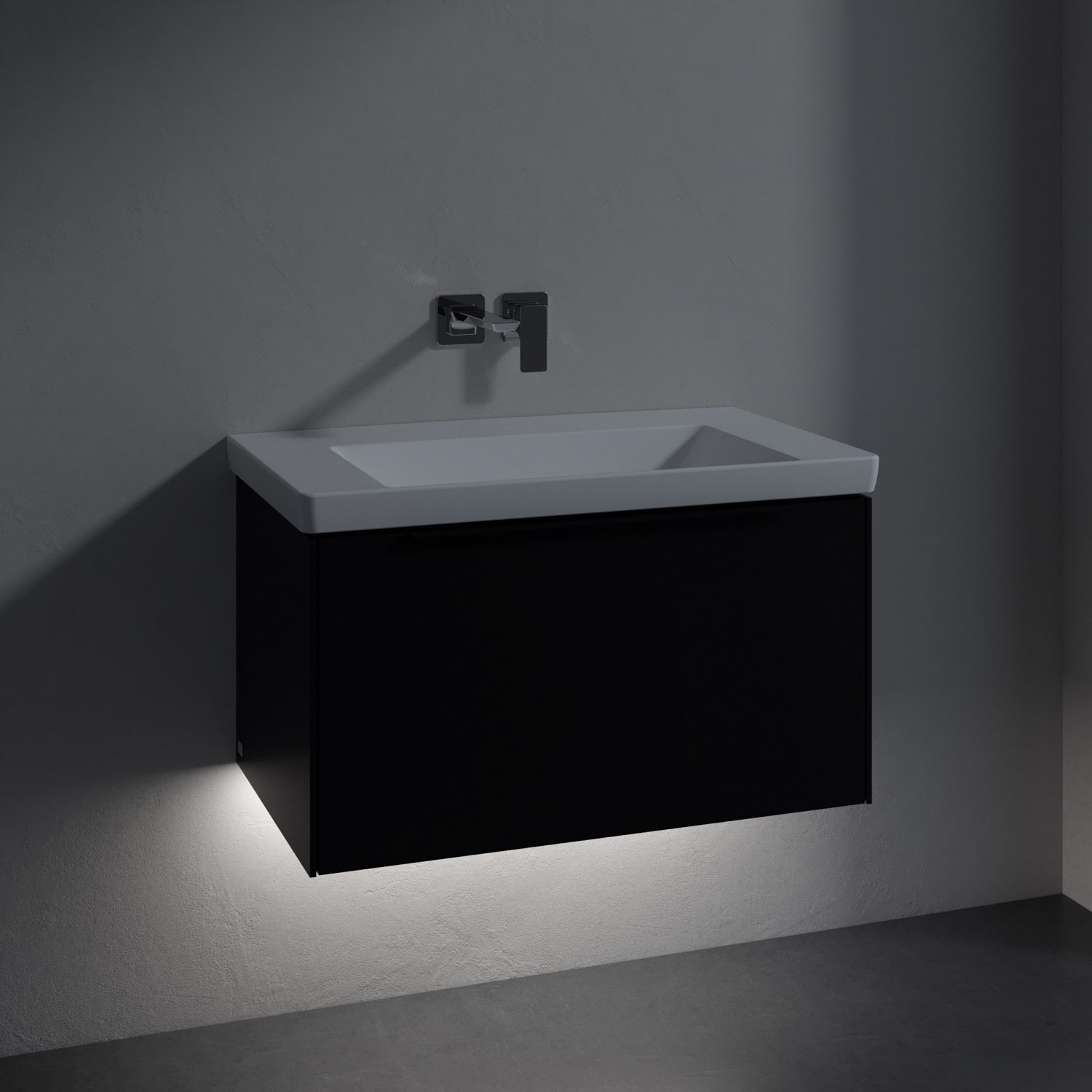 Villeroy & Boch Subway 3.0 Badmöbel-Set 80 cm mit Beleuchtung, Griff volcano black, 1 Auszug
