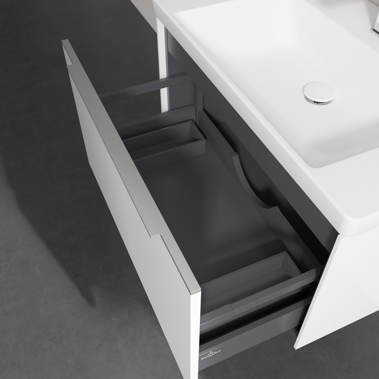 - kein Umfallen oder Verrutschen von Pflegeprodukten in den Schubladen dank rutschhemmendem Boden