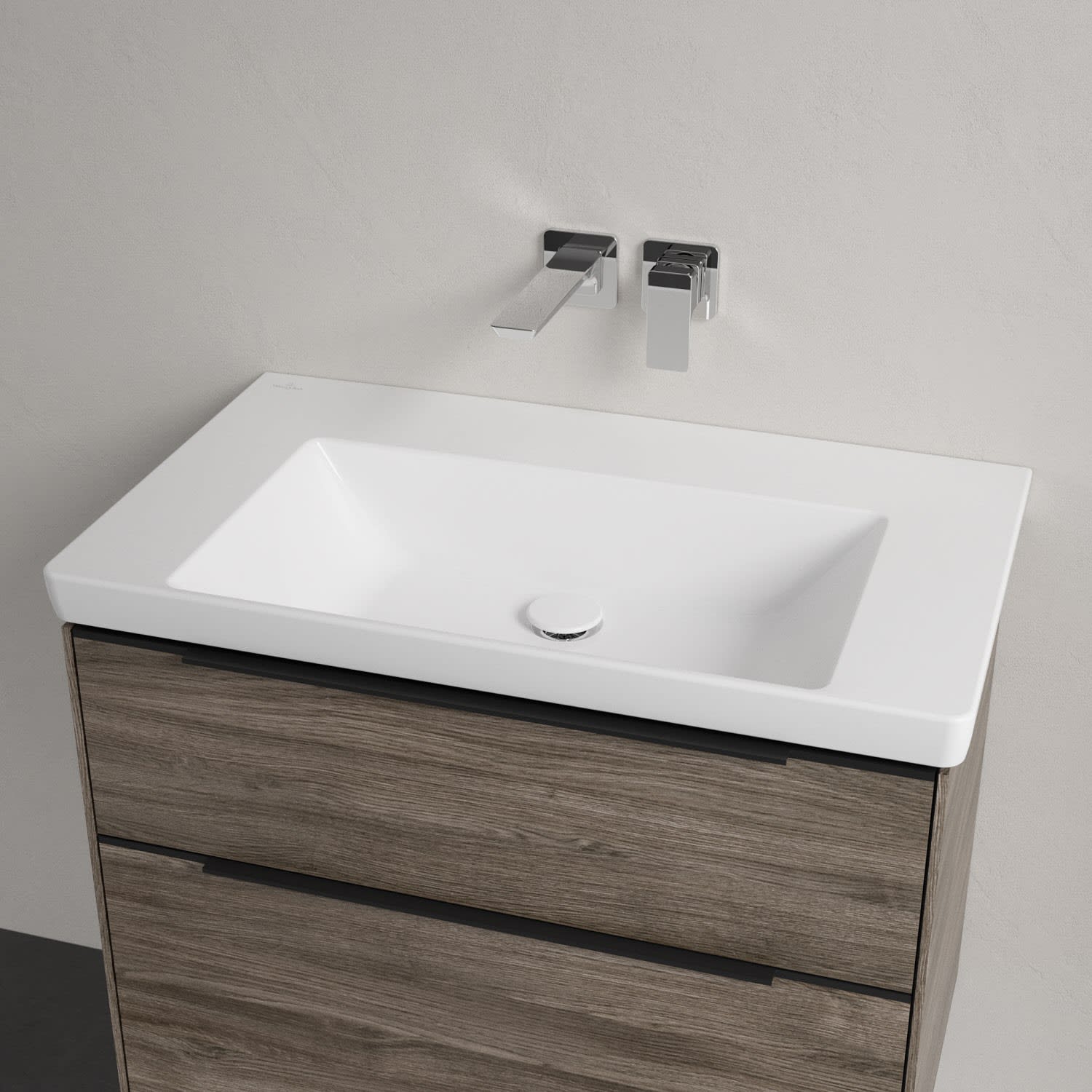 Der rechteckige Schrankwaschtisch zeigt sich in gewohnt zeitlosem Design. Sein schmaler Rand und das längliche Überlaufloch sorgen für einen modernen Look und ein stilvolles Gesamtbild. Das tiefe Becken ermöglicht eine vielfältige Nutzung auch abseits von Hände waschen und Zähne putzen: Es bietet beispielsweise ausreichend Platz zum Haare waschen oder Einweichen von Wäsche. Sowohl auf der breiten Hahnlochbank wie auch den beiden seitlichen Ablageflächen findet sich genügend Fläche für Seifenspender und andere Utensilien. Gefertigt ist das Waschbecken aus dem innovativen Werkstoff TitanCeram. Er verleiht ihm seine feinen Konturen und macht es besonders widerstandsfähig und robust – für lange Freude am Produkt!