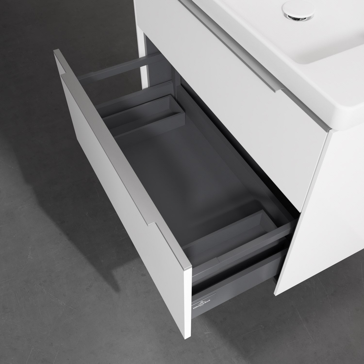 - kein Umfallen oder Verrutschen von Pflegeprodukten in den Schubladen dank rutschhemmendem Boden