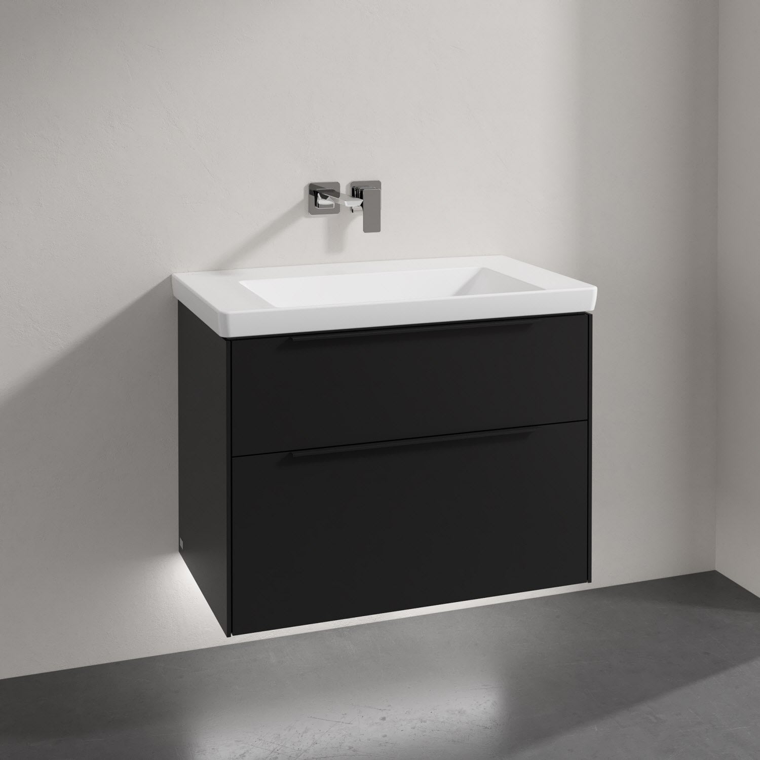Villeroy & Boch Subway 3.0 Badmöbel-Set 80 cm mit Beleuchtung, Griff volcano black, 2 Auszüge